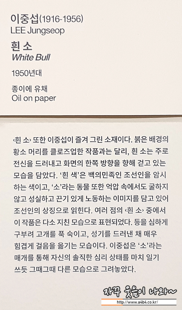 이중섭 박물관에서도 만날 수 없었던, 이중섭의 흰 소와 황소 작품. 생각보다 작은 사이즈에...