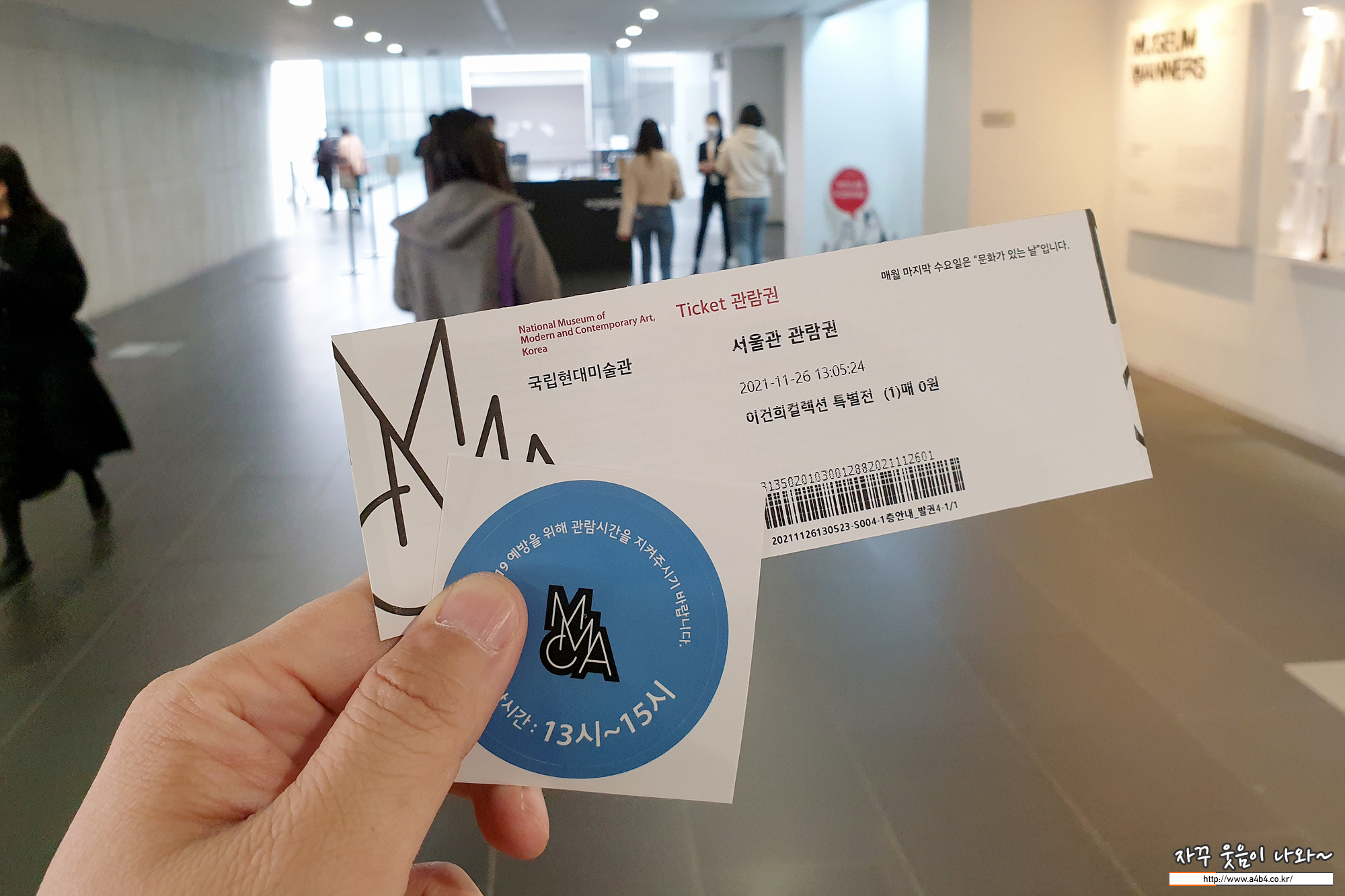 또한, 예약한 일자와 시간 외에는 티켓팅은 물론 관람도 불가합니다. 또한 티켓 발부시 신분증 확인되 진행되니 신분증 꼭 챙켜가세요. 위 사진과 같이 예매 시간에 맞춘 스티커도 준답니다.