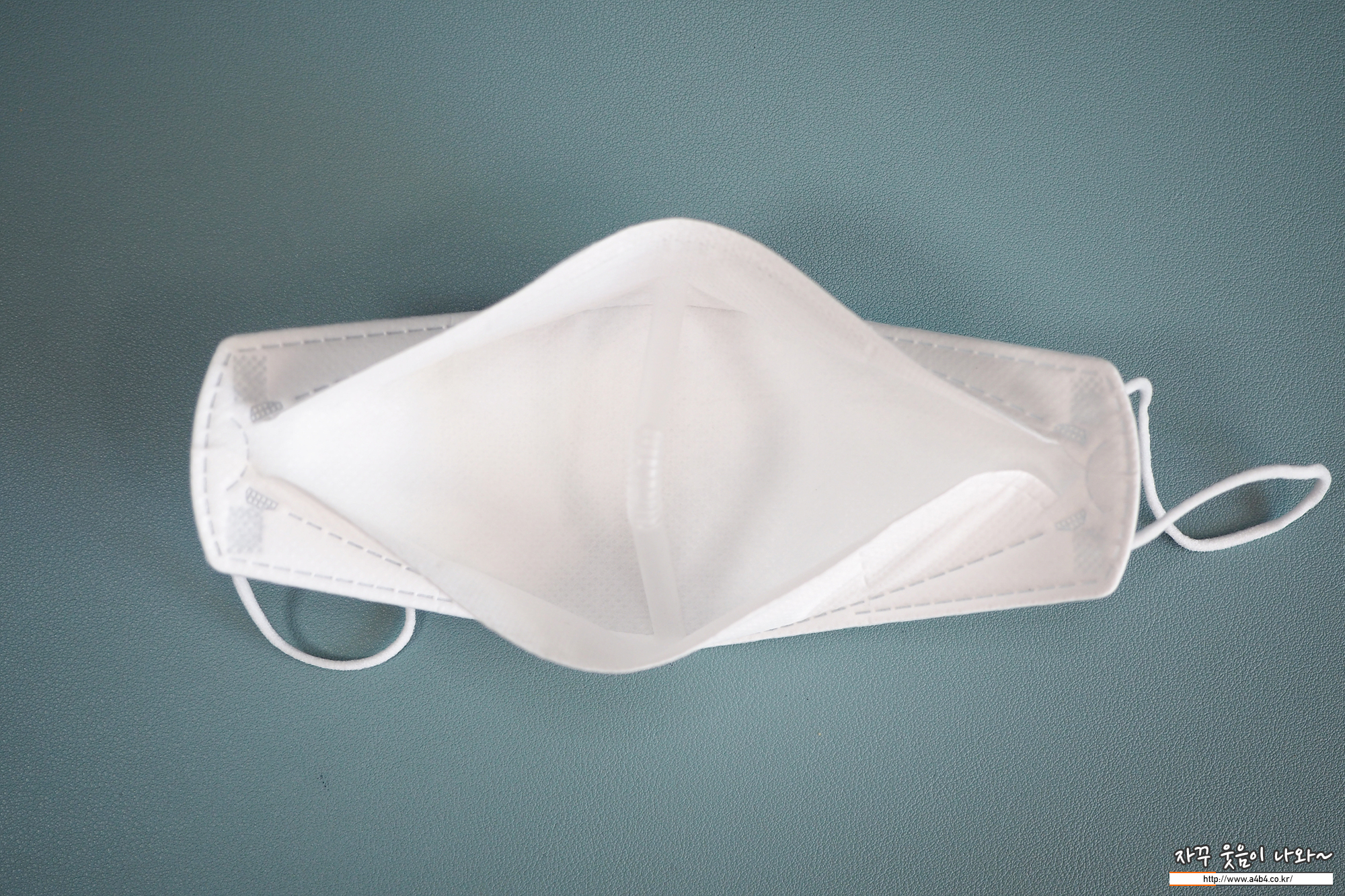 마스크 타입은 앞에서도 언급했듯, 가로 삼단접이식 3D 타입의 마스크입니다. 일반적인 타사 제품과 비슷한 타입으로 안쪽에 세로 선이 있는 부분이 특징입니다.