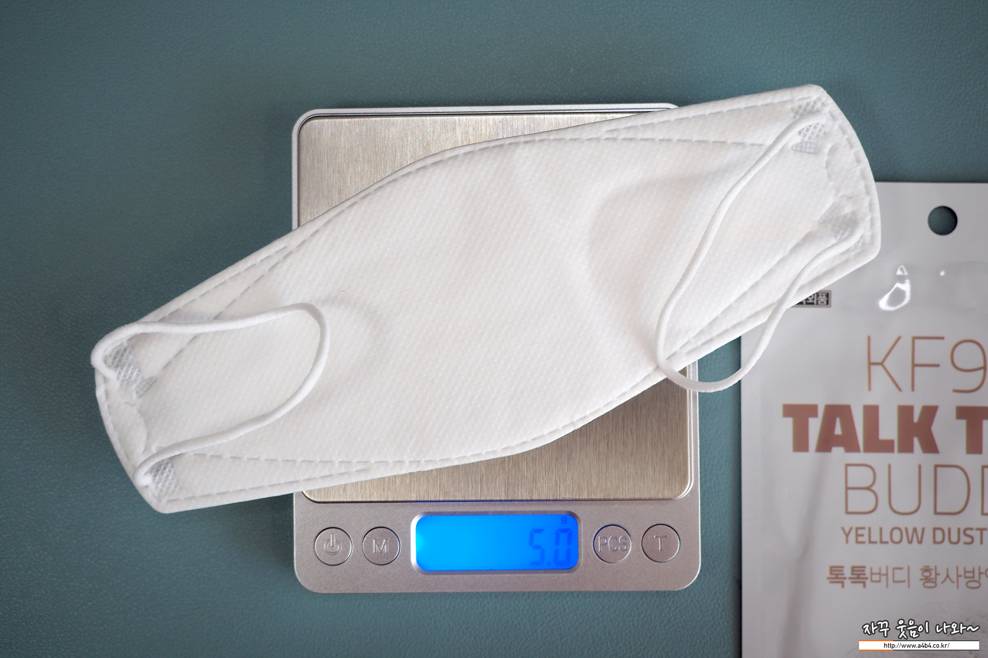 톡톡버디 KF94 마스크 대형 중량은 5.0g으로 타사 대형 제품과 비슷한 중량을 보입니다.