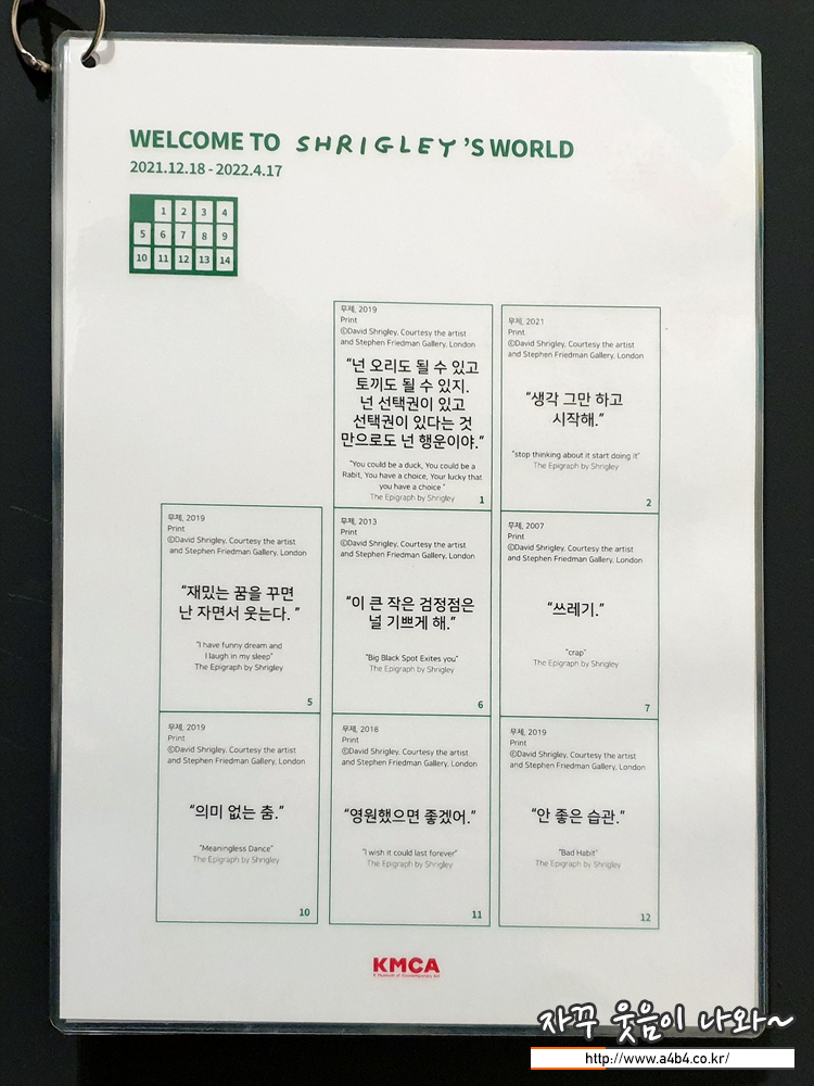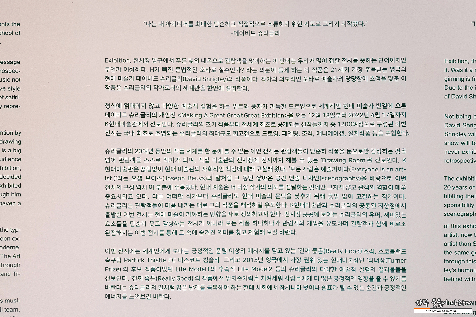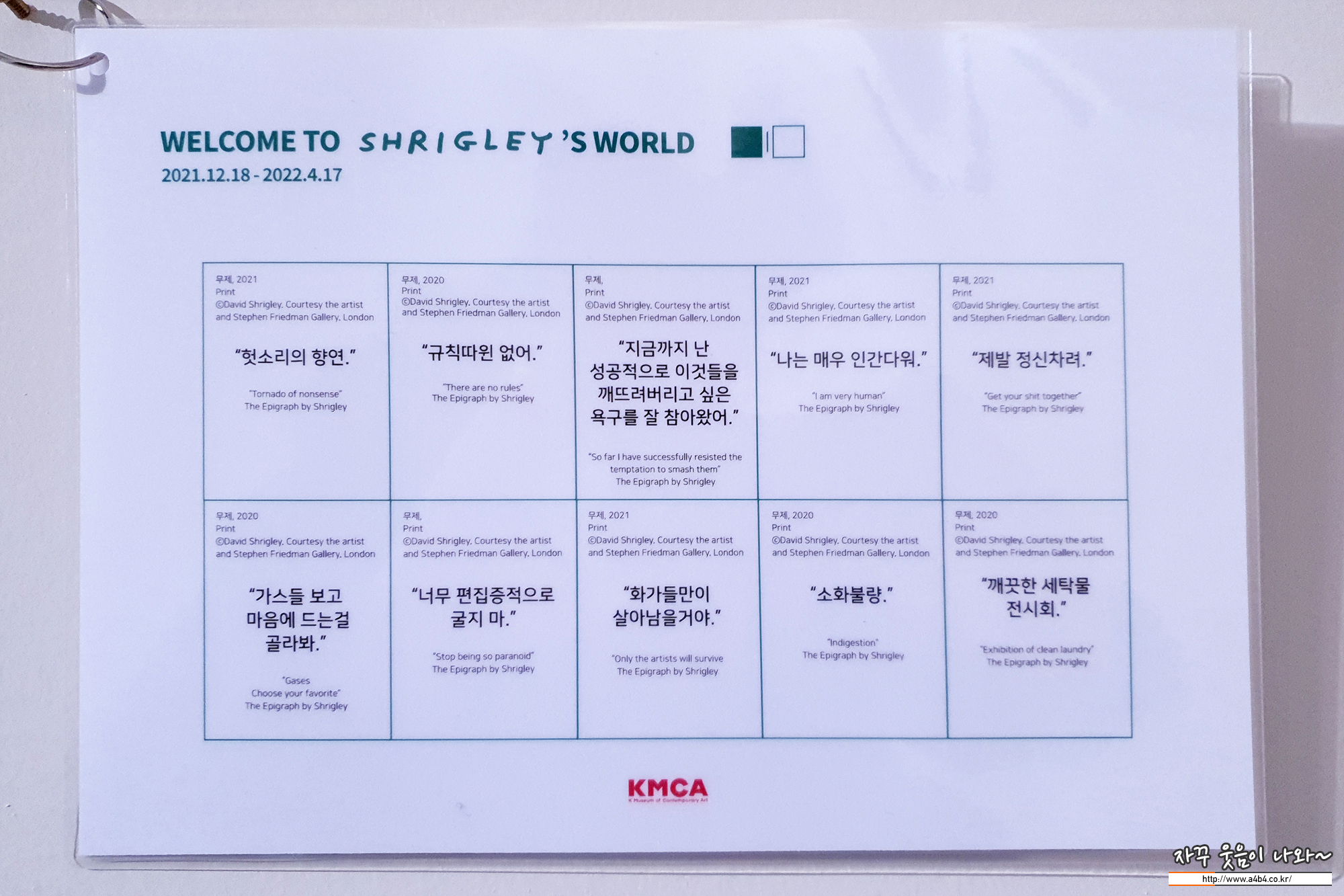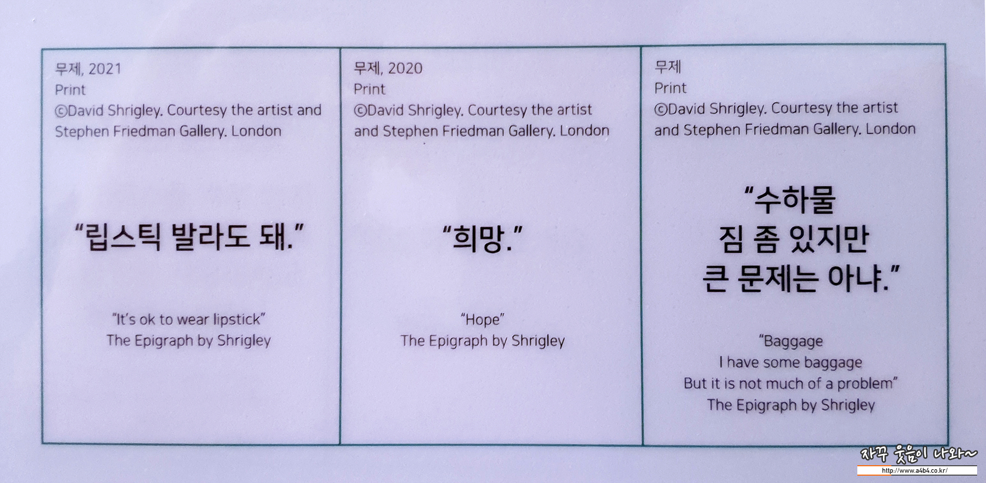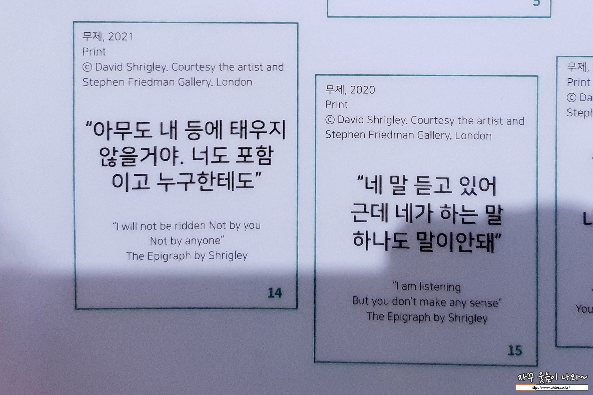 이것으로 압구정동 K현대미술관에서 열리고 있는 데리비드 슈리글리 전시회 관람 후기 마칩니다.