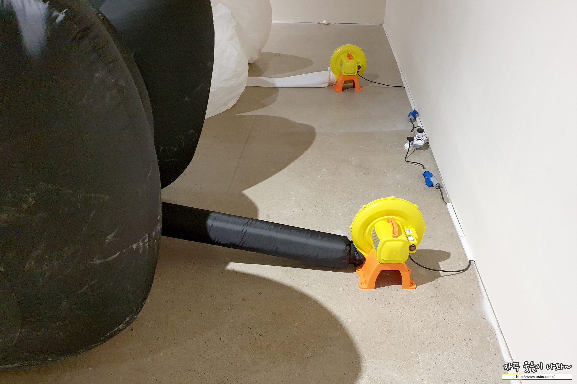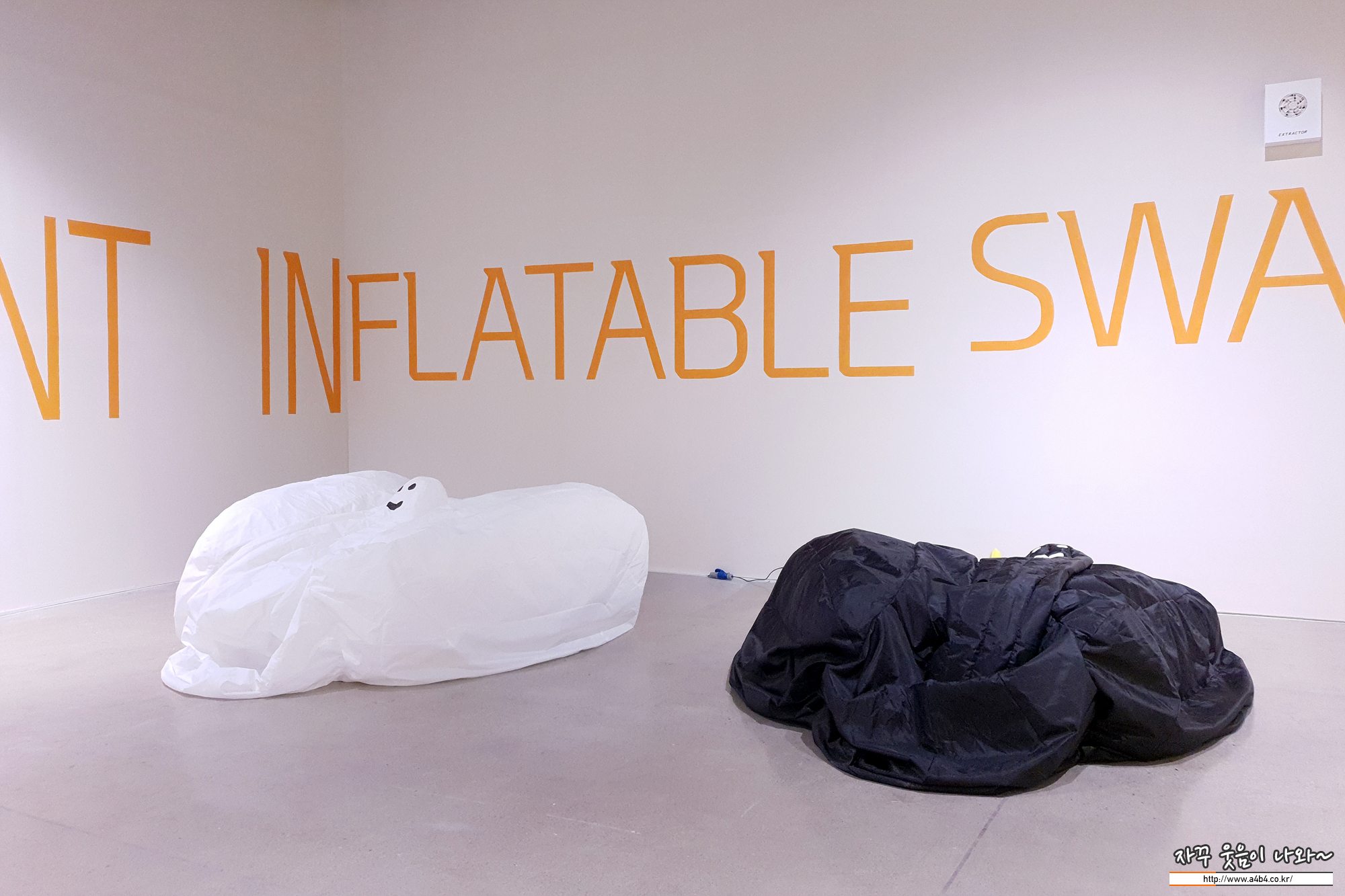 그러나 옆 공간으로 이동하고, 잠시 후 기계 소리가 들리더니 흑조에 바람이 들어가기 시작합니다.