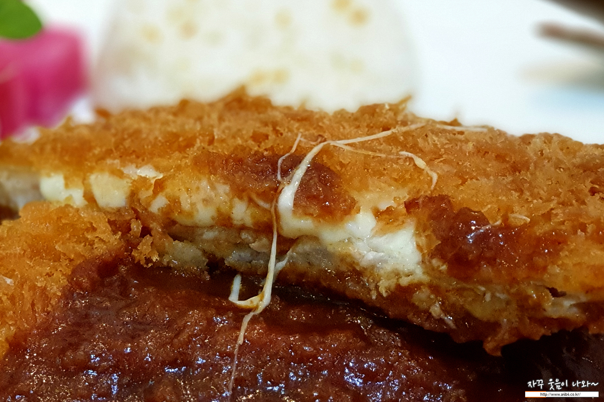 일반적인 돈까스에 치즈가 들어갔다고 생각하시면 됩니다.