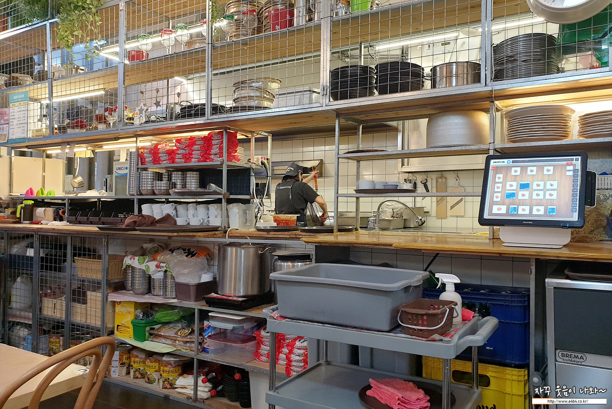 이렇게 잠심 맛집 윤경양식당 주방은 공개되어 있습니다. 상당히 깔끔하고 깨끗하게 운영되고 있네요.