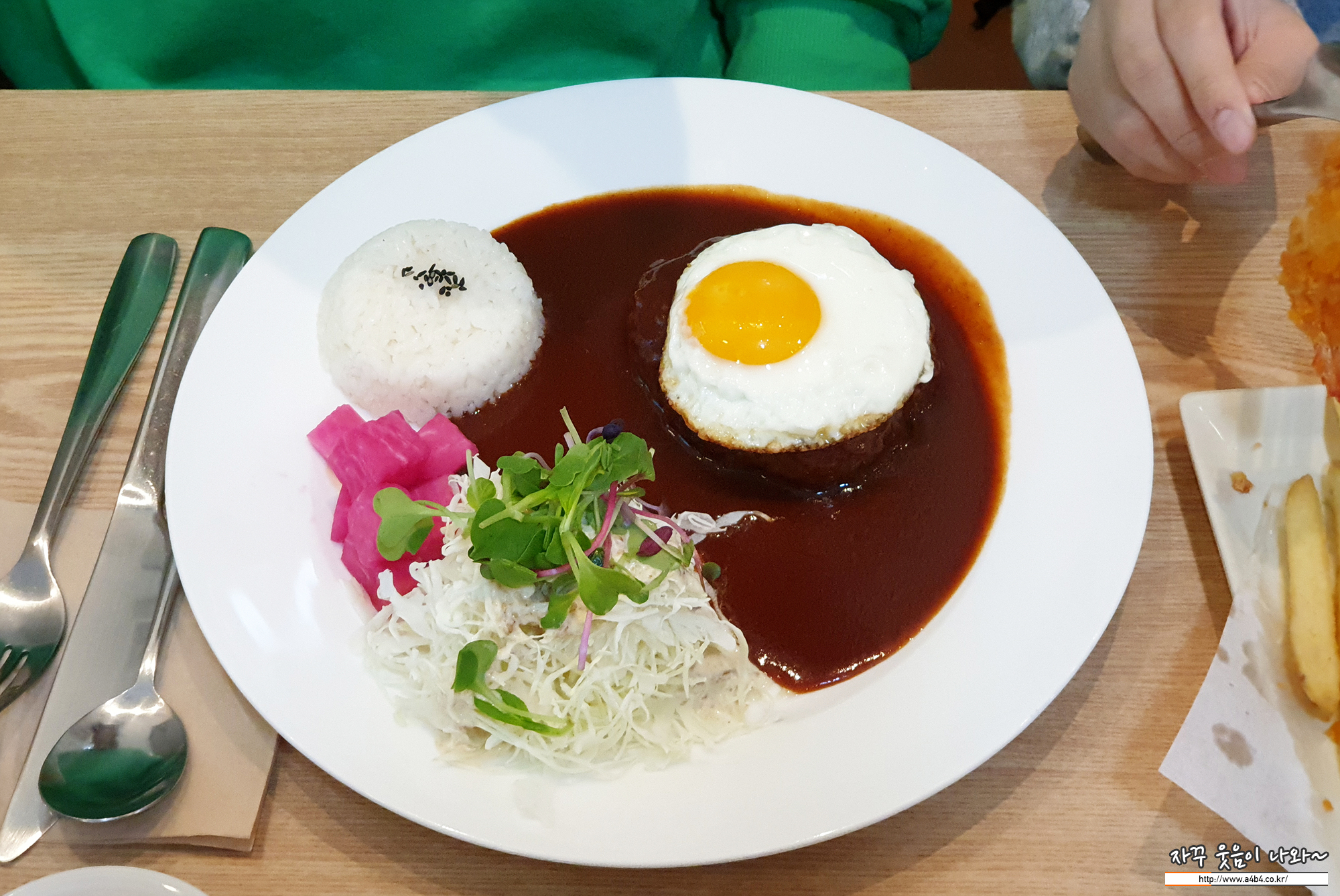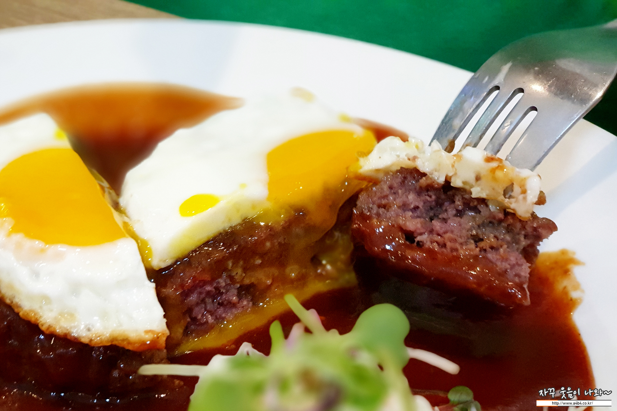 역시 함박스테이크는 계란 노른자와 소스를 함께 먹는 그 맛이...