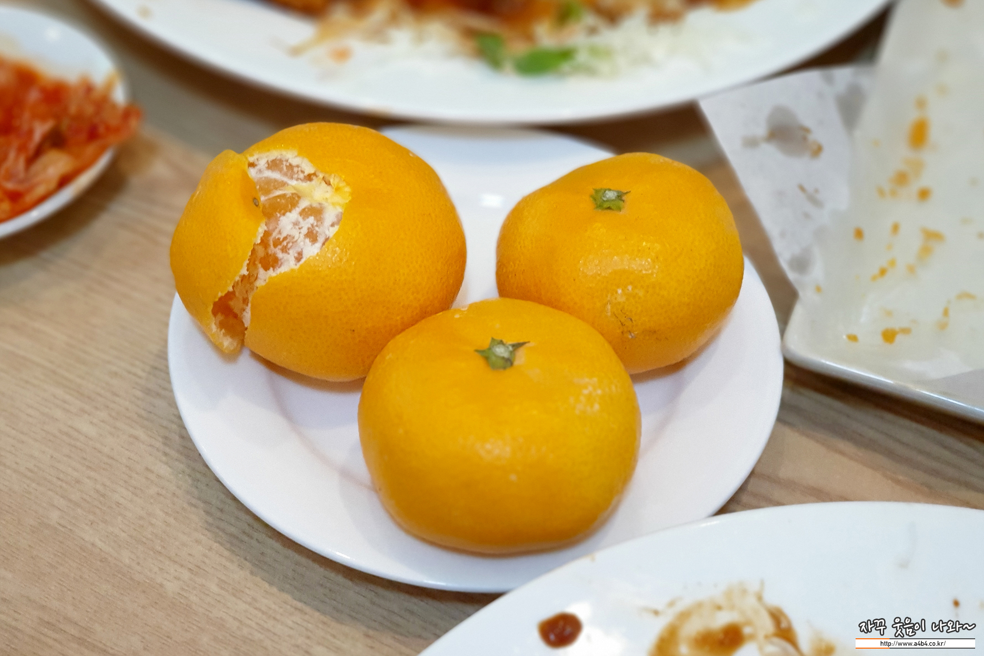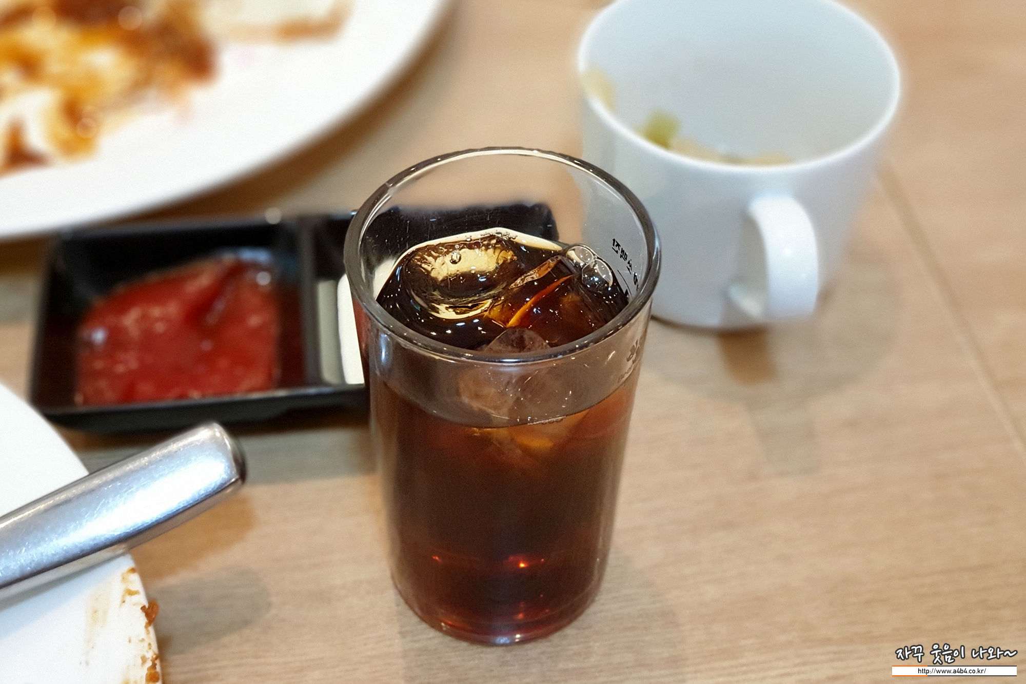 후식으로는 아이스 아메리카노가 나오네요. 아이가 커피먹기에는 아직 어린 나이라고 하니, 서비스로 귤도 주시더라는...