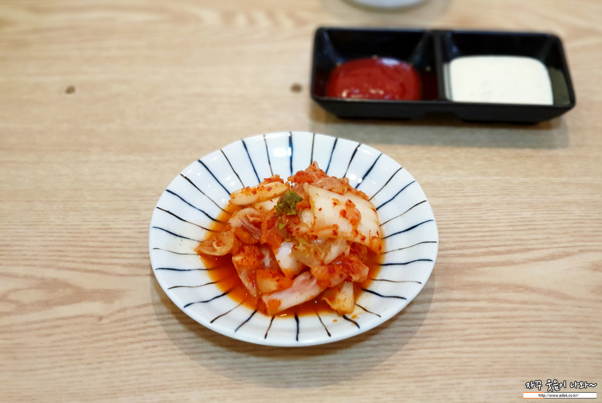 돈까스와 함박스테이크를 주문하면 기본 반찬은 김치와 장국이 나옵니다.