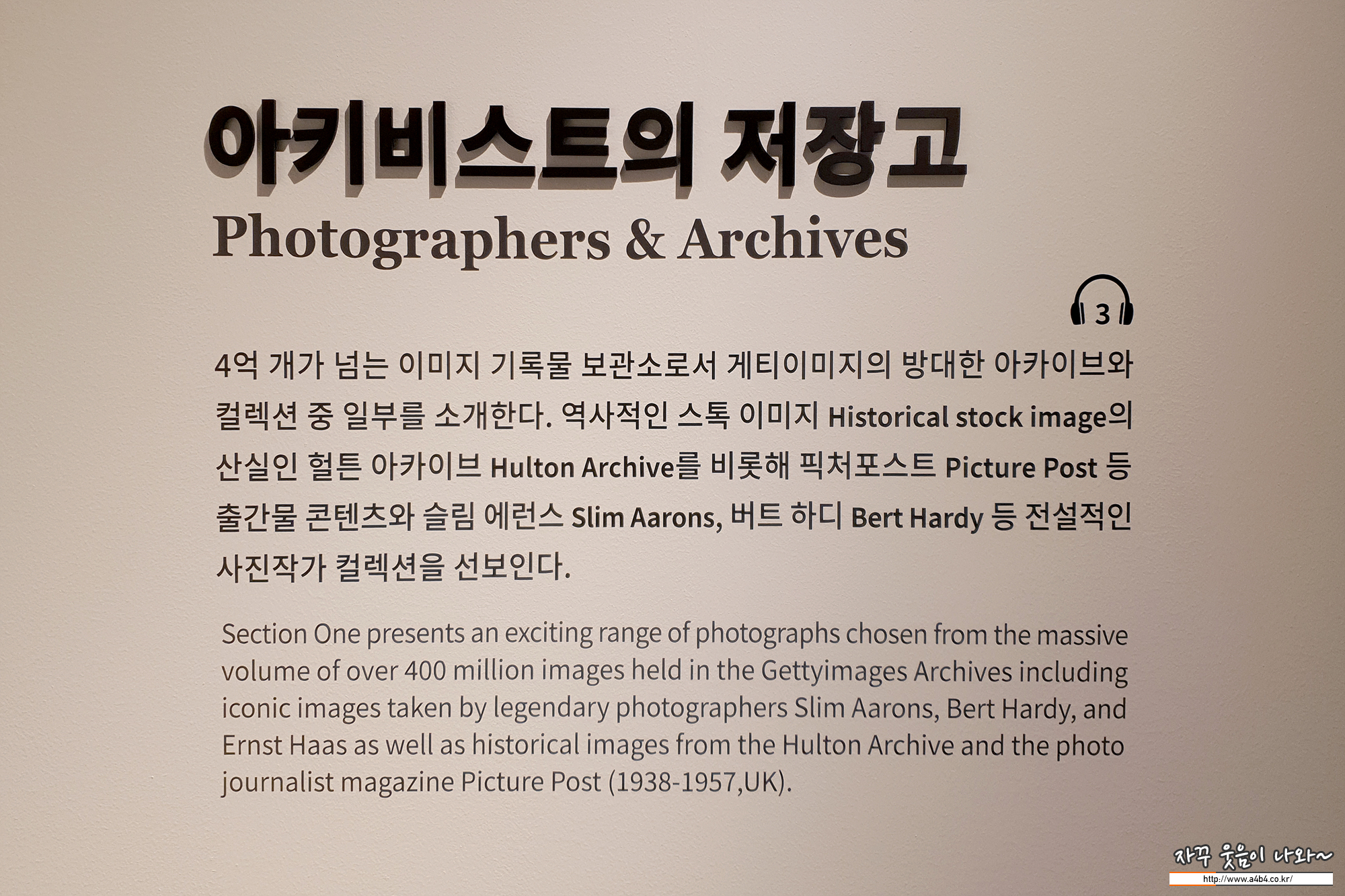 전시회 구성은 주제별 아카이브에 대한 소개와 소속 사진작가에 대한 프로필, 그리고 그들의 작품들이 전시되어 있습니다. 자세한 설명과 캡션으로 사진 감상에 많은 도움이 되네요.