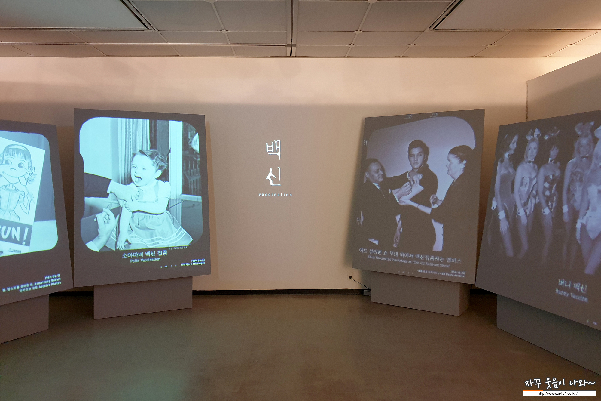 이번 게티이미지 사진전의 마지막 전시공간 입니다. 펜데믹 주제로 현재와 미래의 희망을 잘 표현한 미디어월 공간입니다. 마스크로 시작해서 방역 백신 여행 만남 희망까지, 우리의 현실과 미래 희망을 사진으로 잘 정리한 공간입니다.