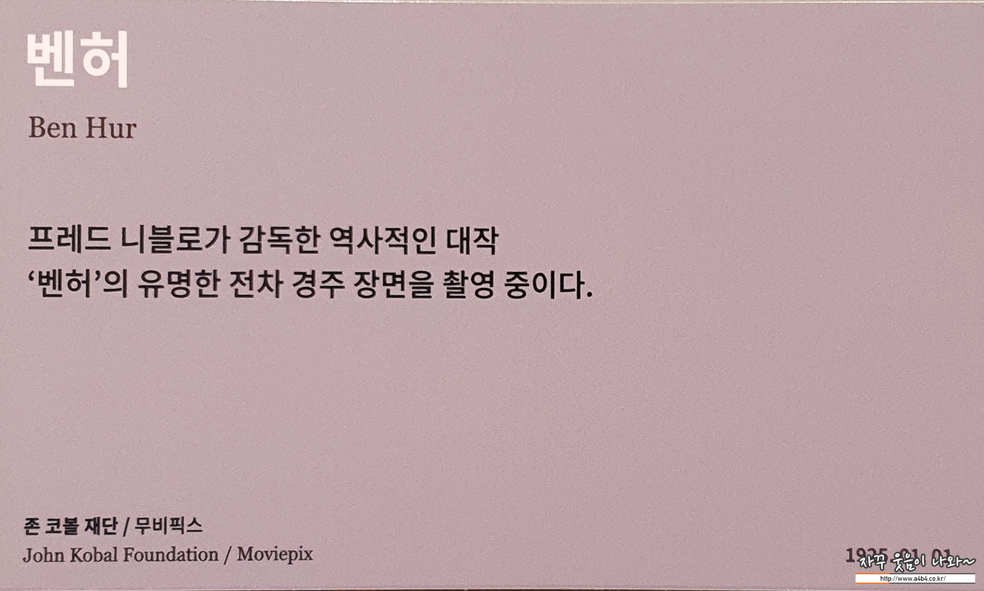 영화 벤허의 촬영 장면과 MGM 영화 시작에 나오는 사자 레오는 이렇게 완성되었군요.