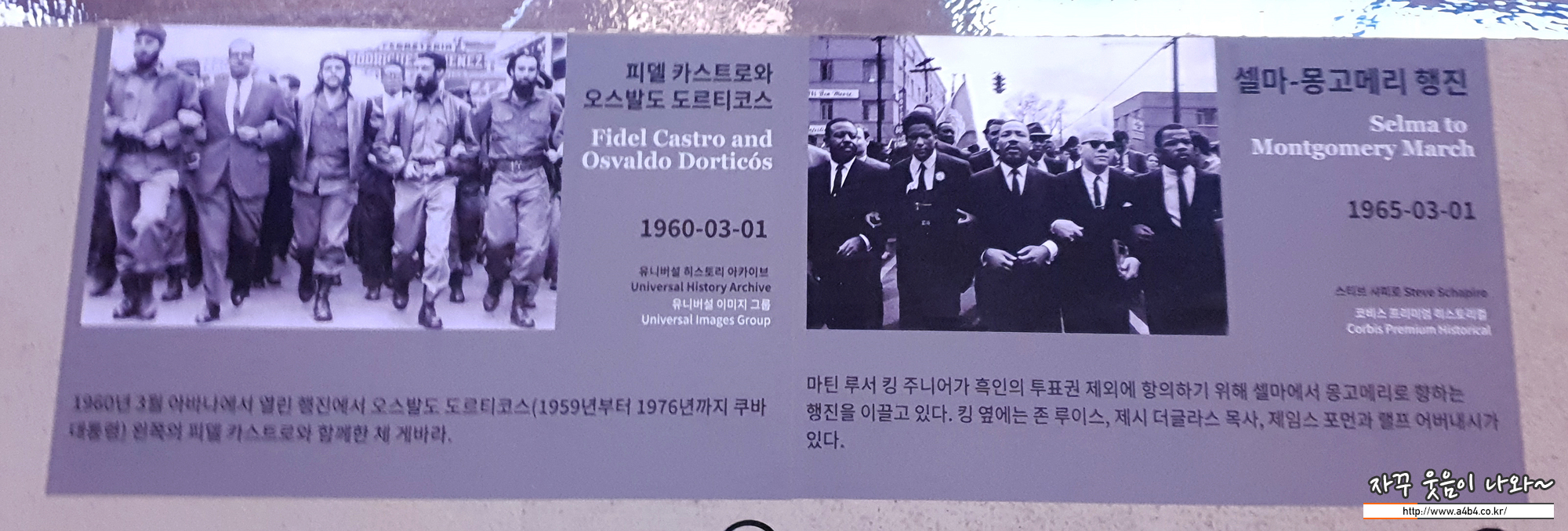 이번전시회의 대표 사진중 하나인 카스트로의 행진과 킹목사의 행진 사진... 비슷한 시기에 쿠바와 미국에서 혁명과 인권을 위한...