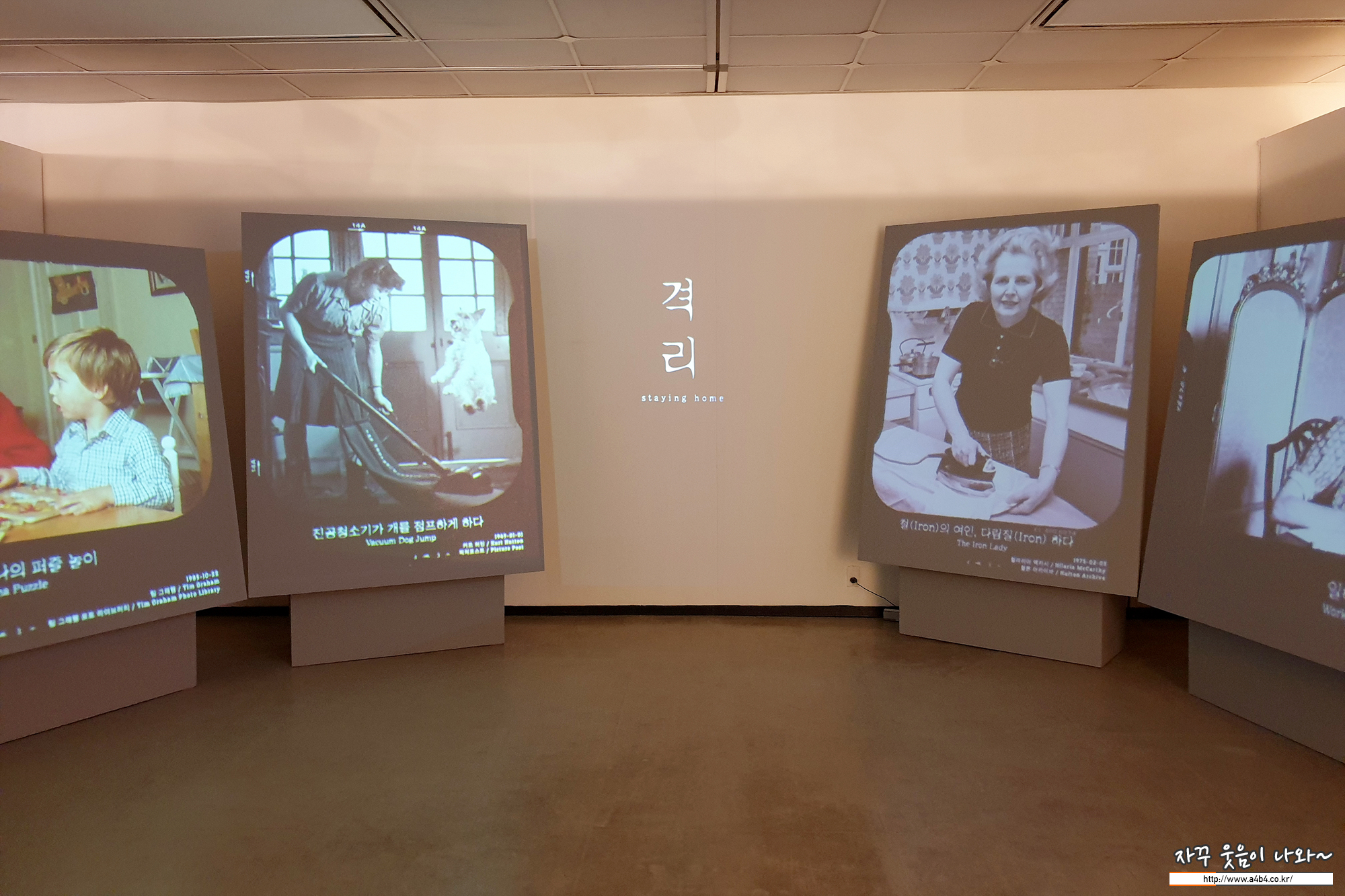 이번 전시회에서 마음에 든 공간 중 하나입니다. 다른 시점 다른 공간이지만 마치 같은 일인 것 같은 두장의 사진을 비교하는 섹션입니다. 모니터 아래에는 해당 작품에 대한 자세한 설명이 있어 작품 이해에 많은 도움을 주네요