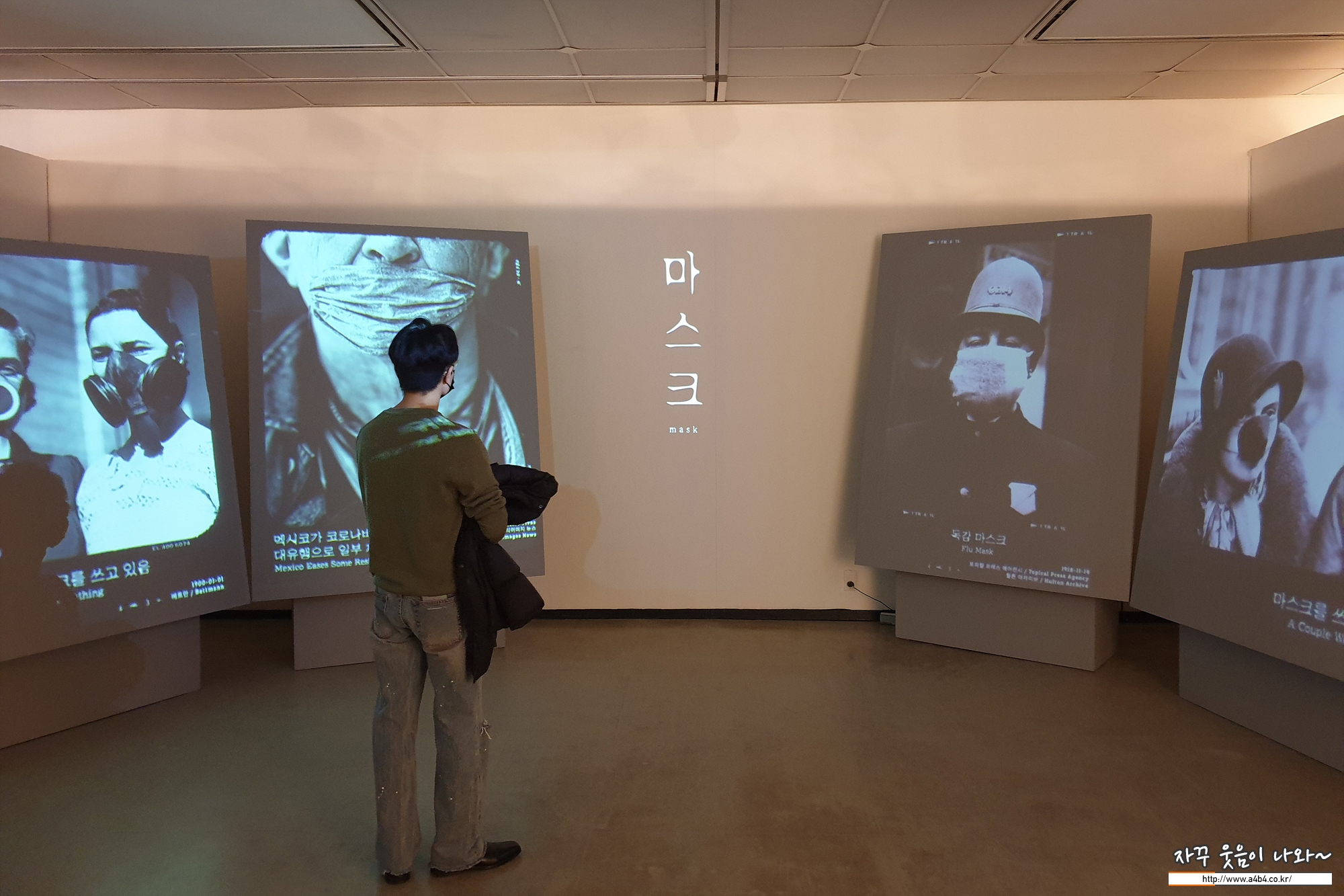 이번 게티이미지 사진전의 마지막 전시공간 입니다. 펜데믹 주제로 현재와 미래의 희망을 잘 표현한 미디어월 공간입니다. 마스크로 시작해서 방역 백신 여행 만남 희망까지, 우리의 현실과 미래 희망을 사진으로 잘 정리한 공간입니다.