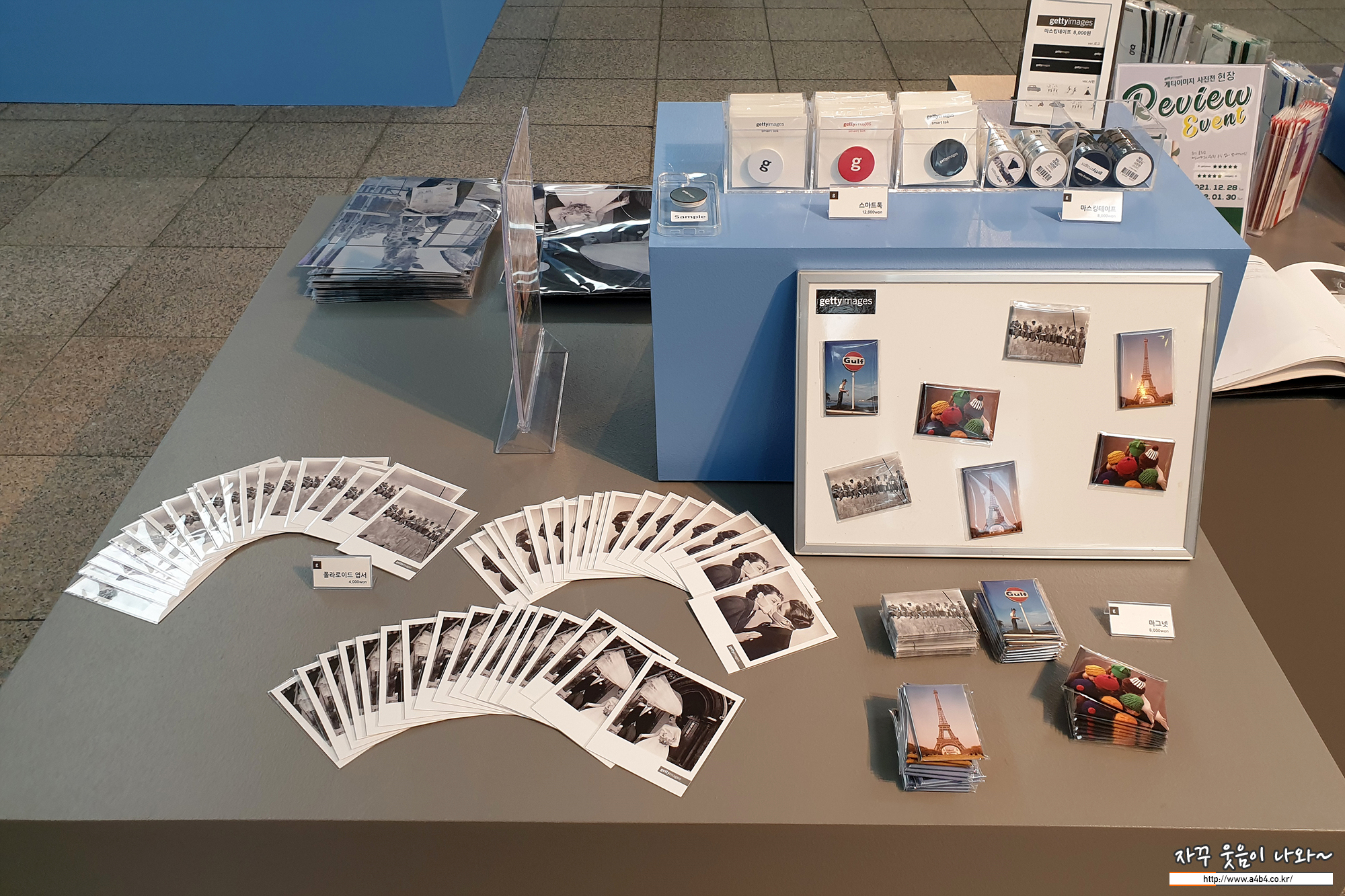 이번 전시회에 대한 간략한 소개와 대표 사진에 게티이미지 로고심볼을 각인할 수 있는 체험공간이 준비되어 있습니다.