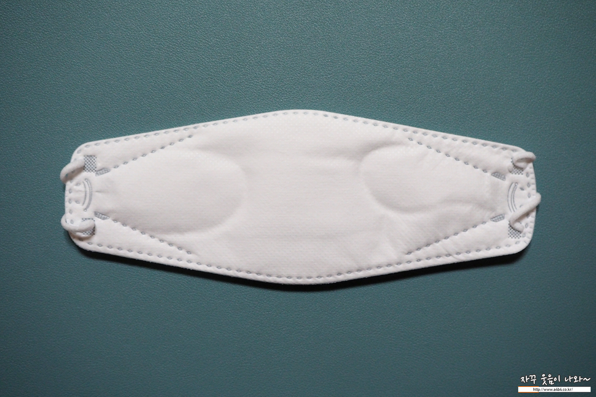 마스크 타입은 일반적인 가로 삼단접이식 입체형 마스크로 큰 디자인 특징은 없습니다. 마름모 타입으로 마스크 높이에 비해 약간 기다란 타입의 제품입니다.