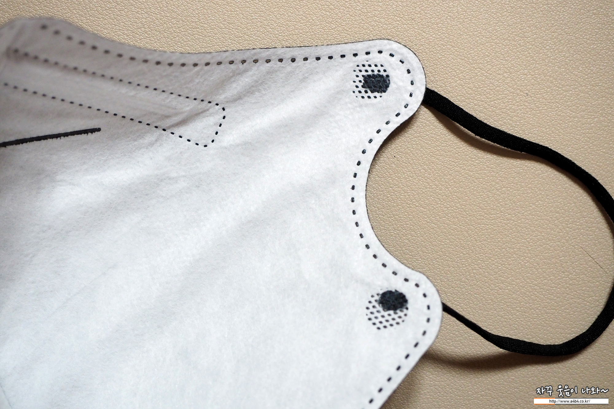 마스크 안감은 보드라운 감촉의 부직포가 적용되었습니다. 마스크에는 보푸라기가 조금 보이는데요. 하루종일 마스크를 사용해도 보푸라기로 인해서 얼굴에 피부 트러블은 생기지 않습니다.
