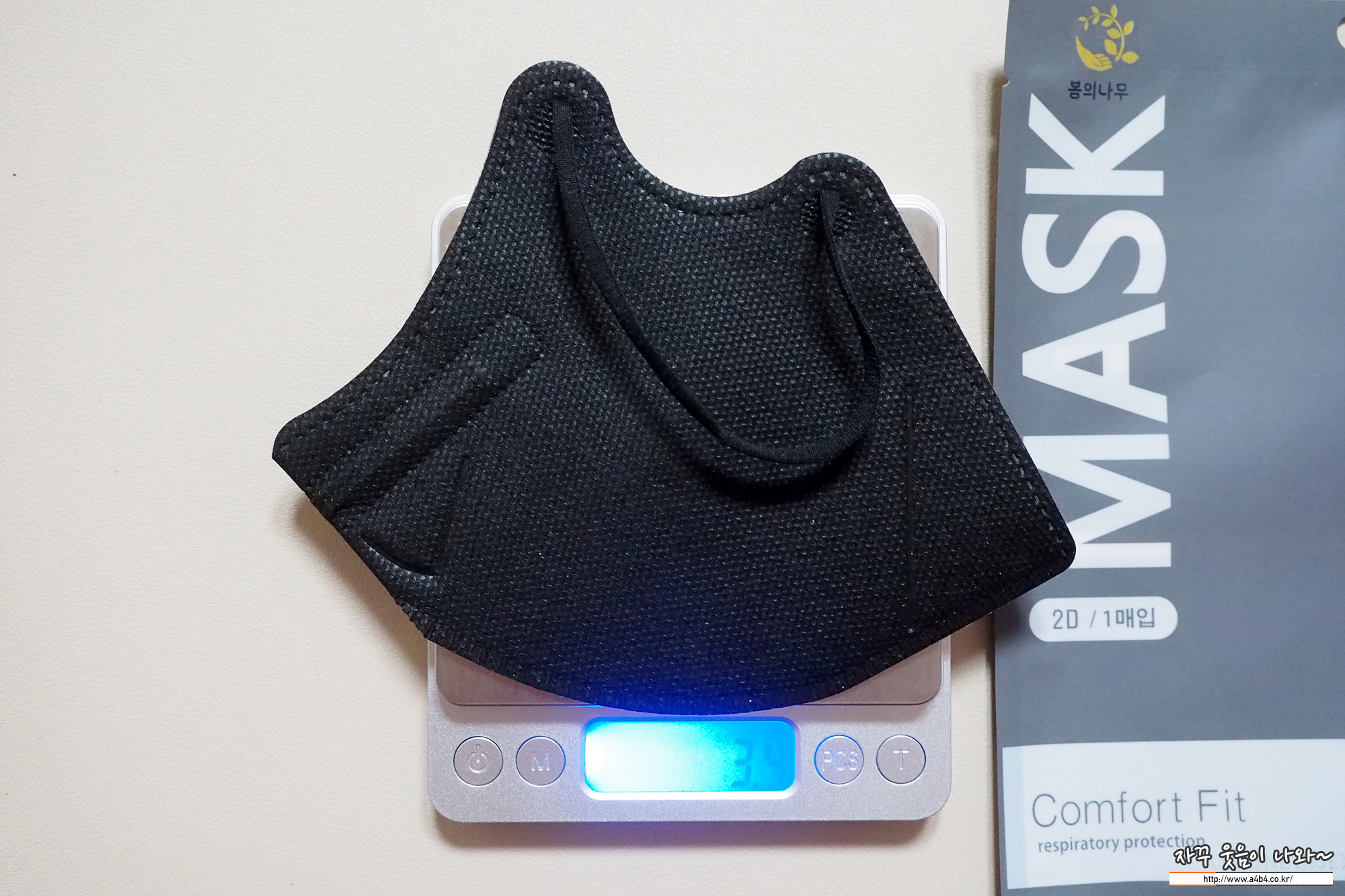 마스크 중량은 3.4그램으로 타사 대형 새부리타입 마스크에 비해서는 약간 가벼운 중량을 보여주고 있습니다.