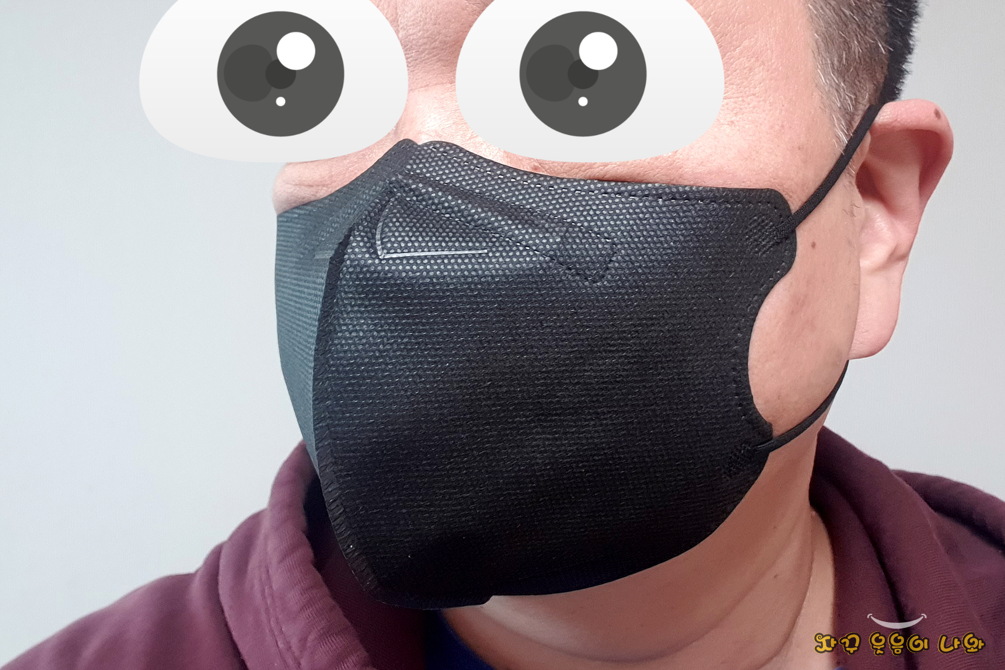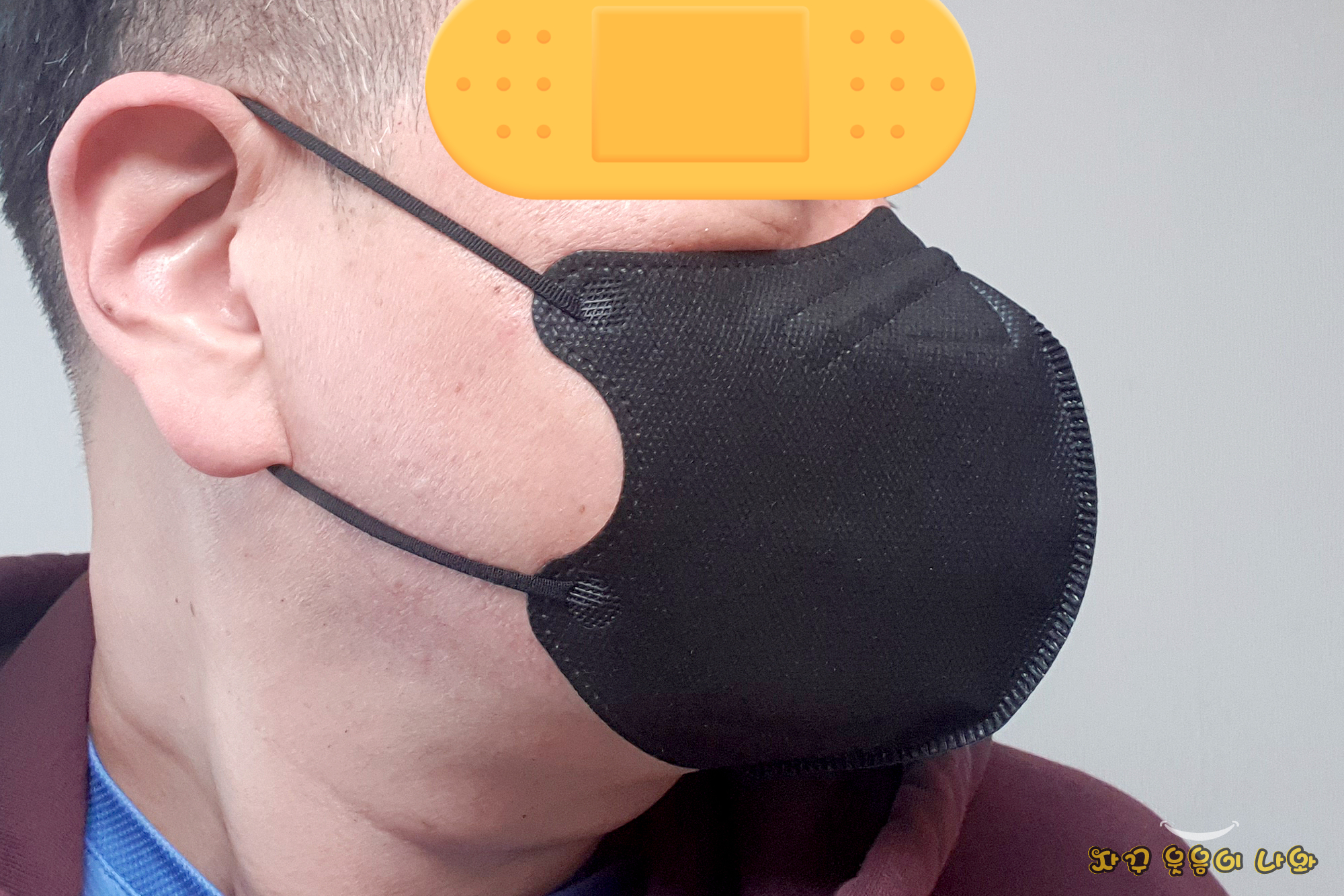 그러나 저 같은 대갈장군은 착용감이 약간 불편한 부분이 있습니다. 특히 얼굴이 긴 분들은 마스크 고정에 불편이 있을 것으로 생각됩니다.