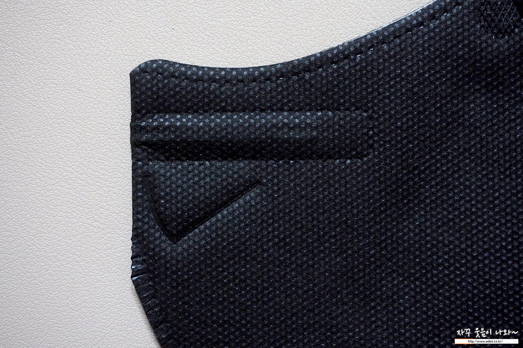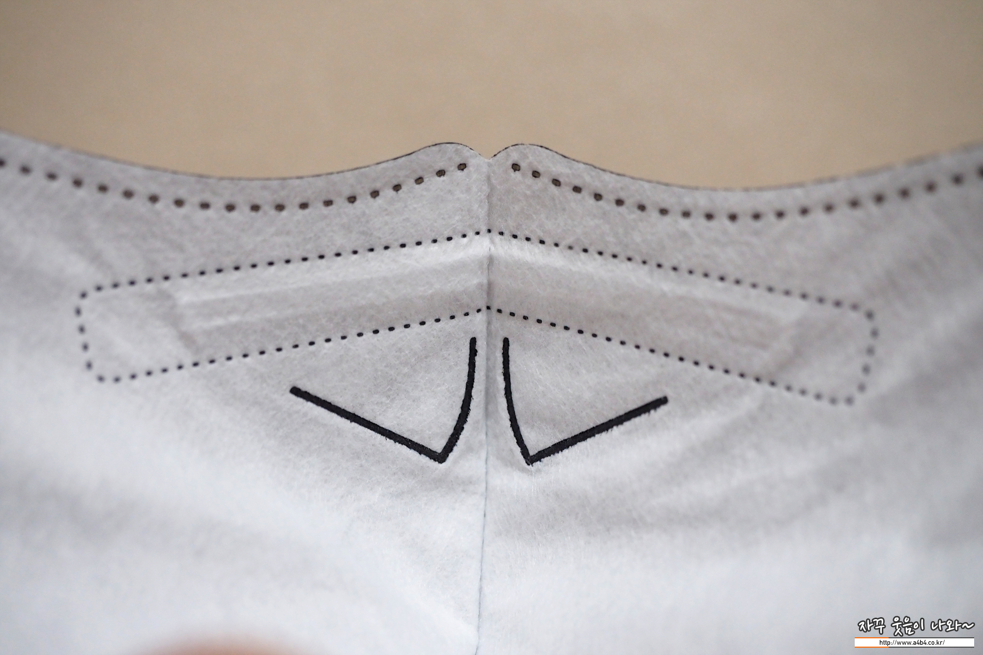 마스크 안감은 보드라운 감촉의 부직포가 적용되었습니다. 마스크에는 보푸라기가 조금 보이는데요. 하루종일 마스크를 사용해도 보푸라기로 인해서 얼굴에 피부 트러블은 생기지 않습니다.