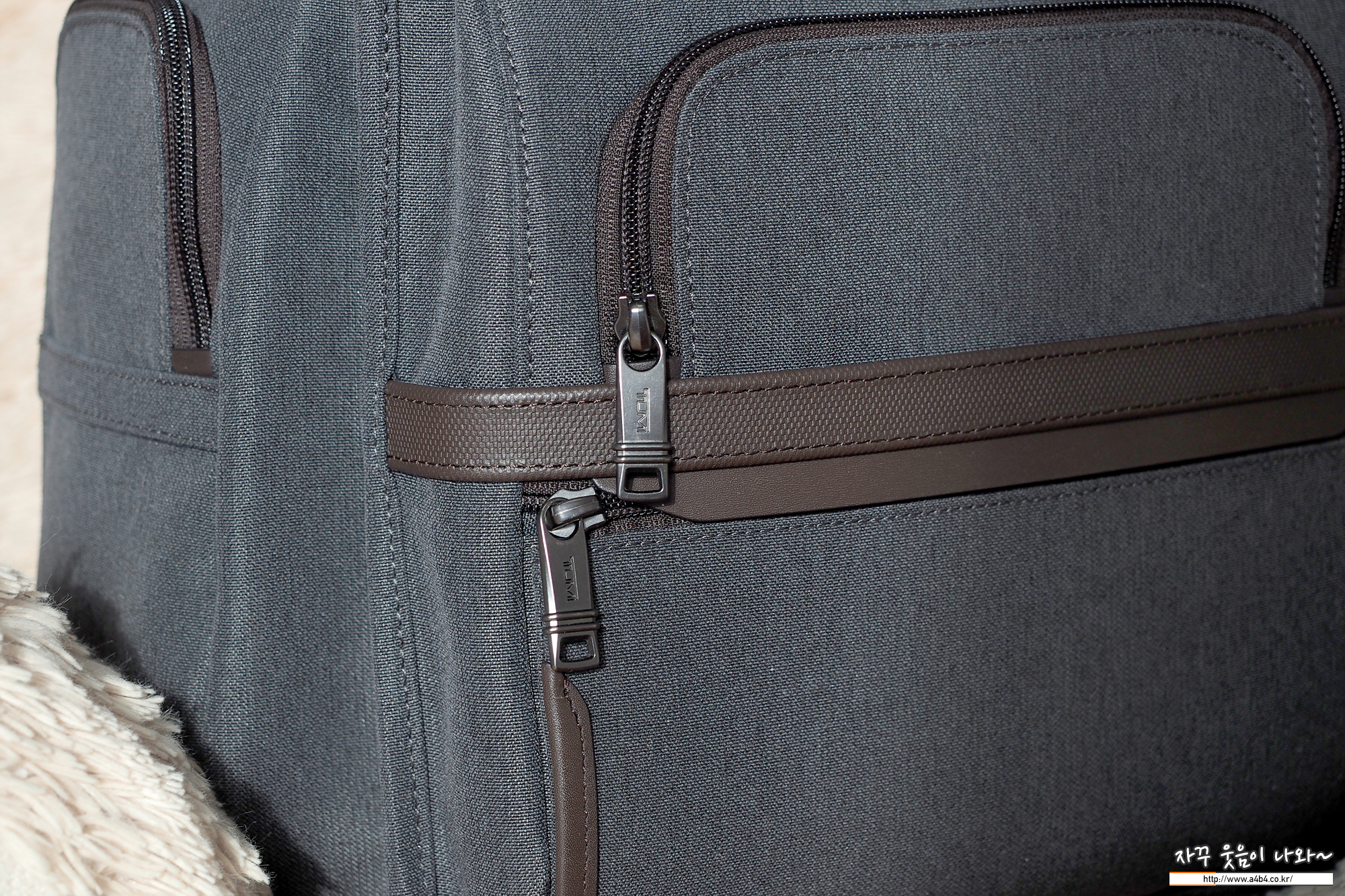 투미로고 및 지퍼 장식