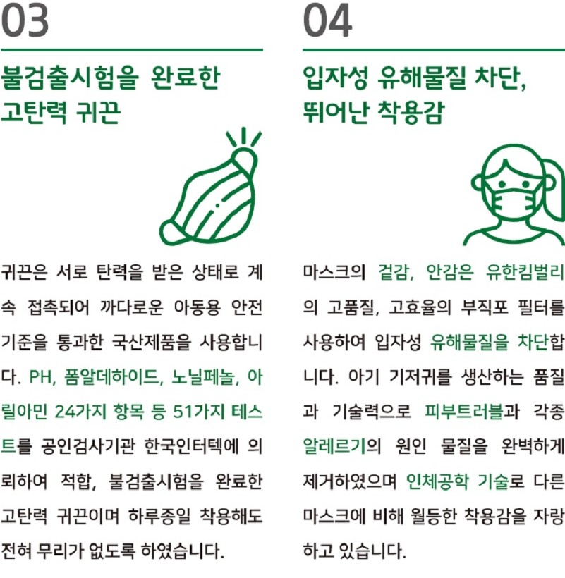국내산 원자재 사용 등 매력적인 조건을 가지고 잇는 제품으로 생각되는데요. 이번 식약처 불량마스크 발표 리스트에 포함되어 있어 안타깝네요.