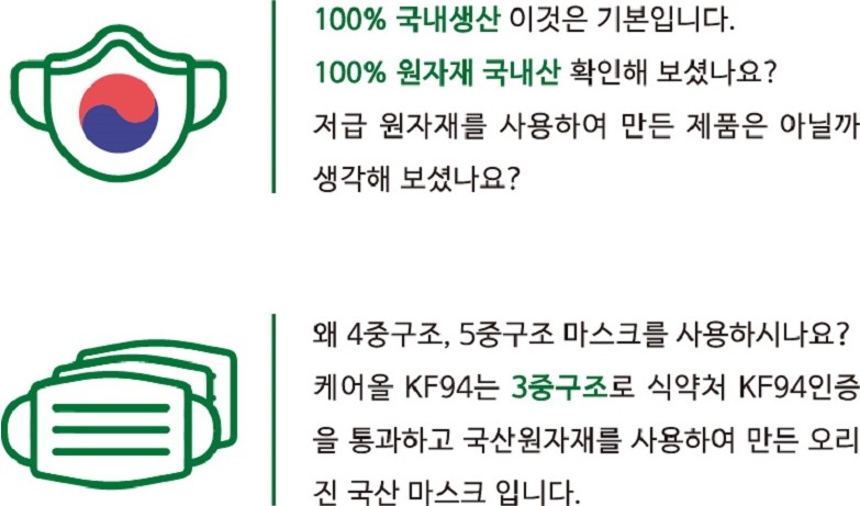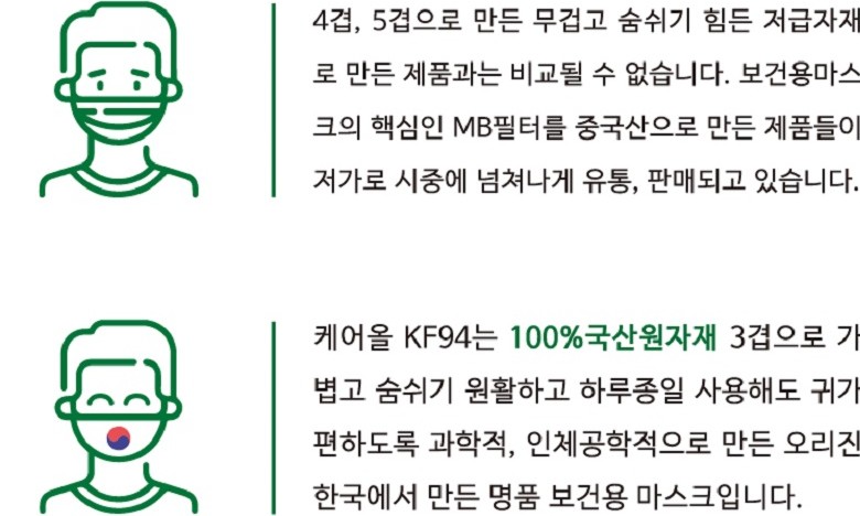 | 아래는 제조사인 애플헬스케어에서 안내하는 케어올 마스크의 특장점입니다.