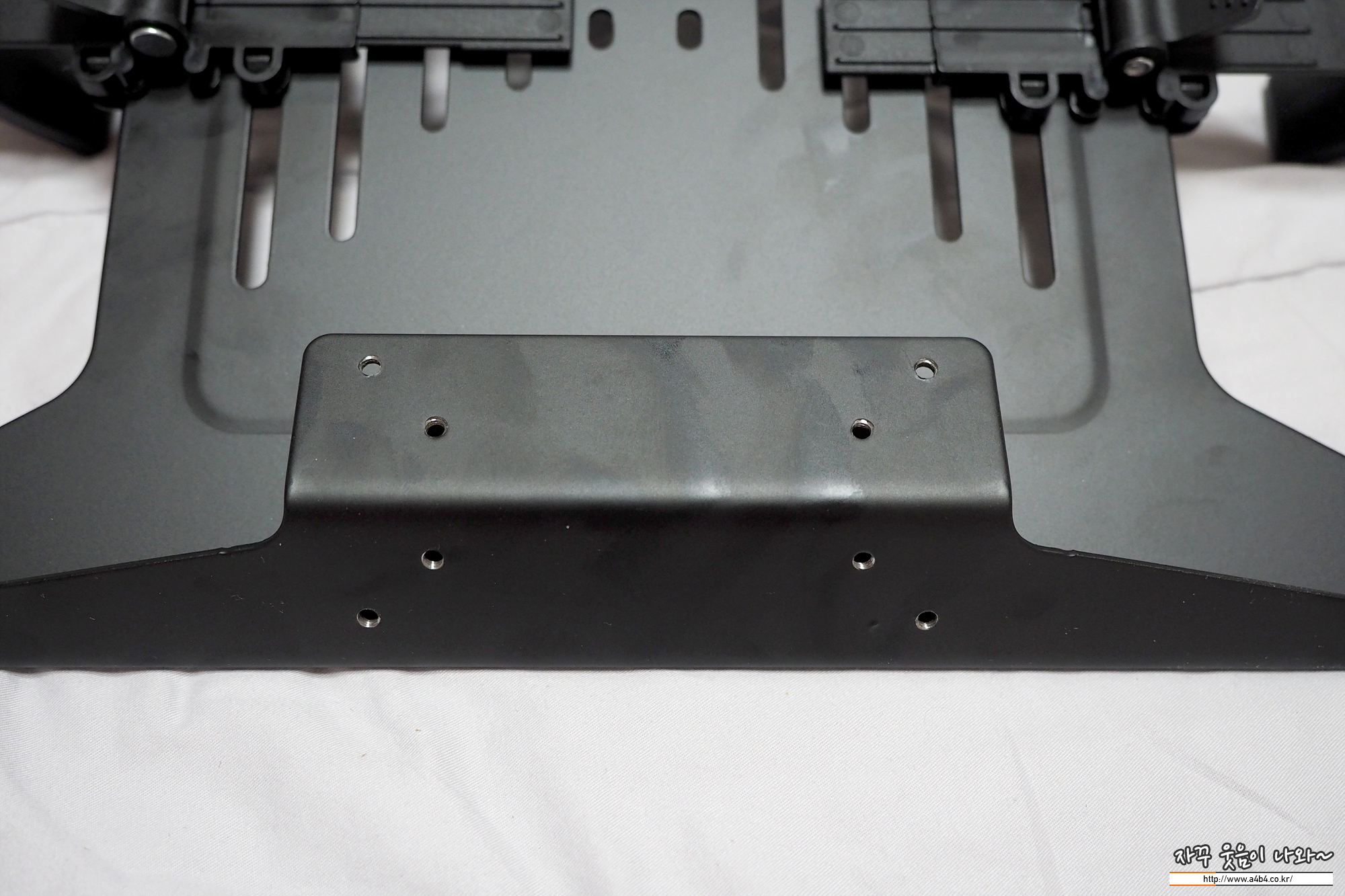 모니터 암은 각각 2개의 암으로 구성되어 있으며, 케이블 정리홀더가 가능하게 구성되어 있습니다. 베사판과 분리되어 있며, 홈이 있어 모니터 장착이 가능합니다. 상당히 튼튼하게 만들어저 있다는... 무게감도 묵직...