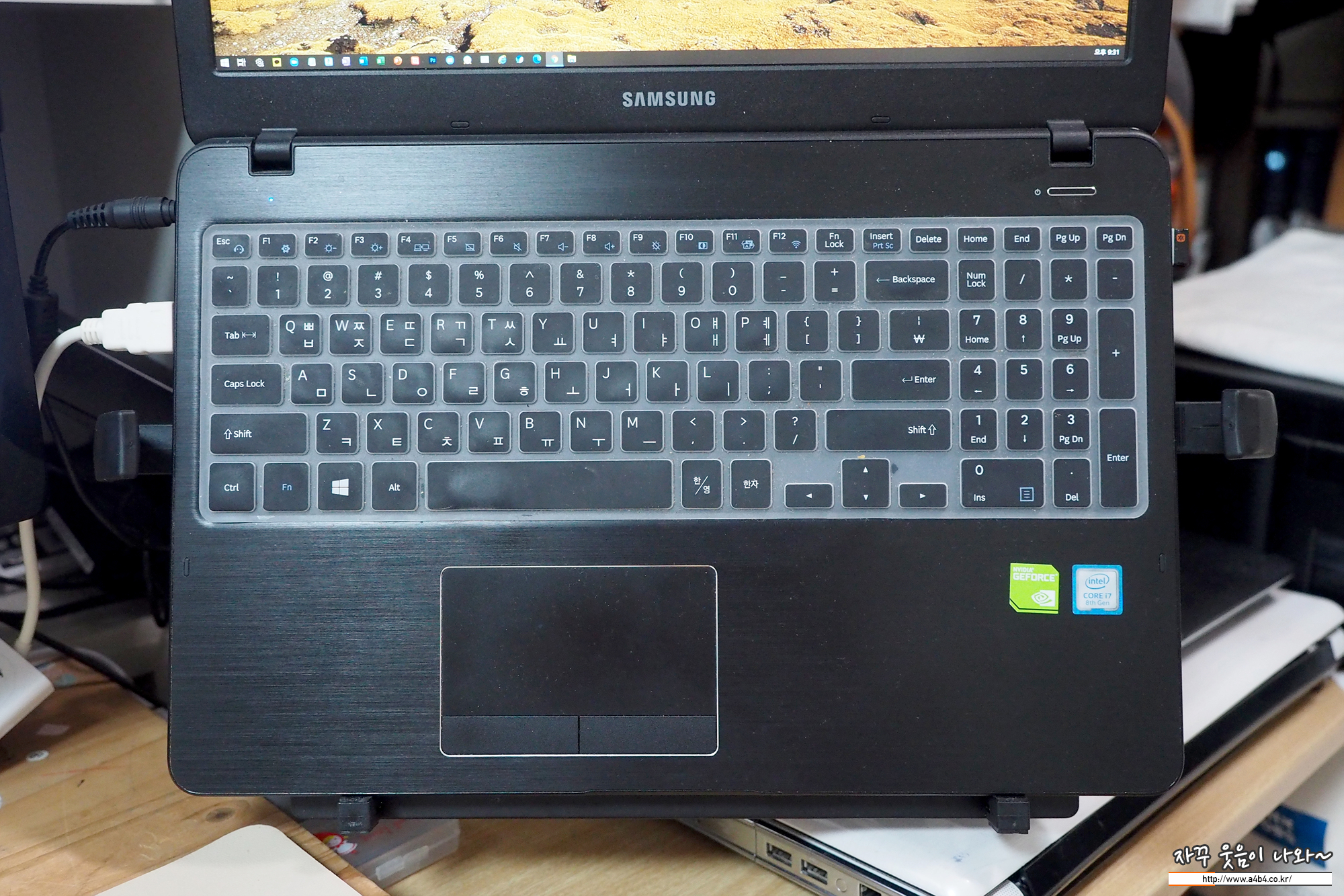 이렇게 판을 열고 클램프에 USB 케이블을 연결하고 PC와 연결하면 책상위에서도 편하게 사용할 수 있습니다. 선 길이도 여유가 있어 PC가 조금 멀리 있어도 큰 불편은 없네요.