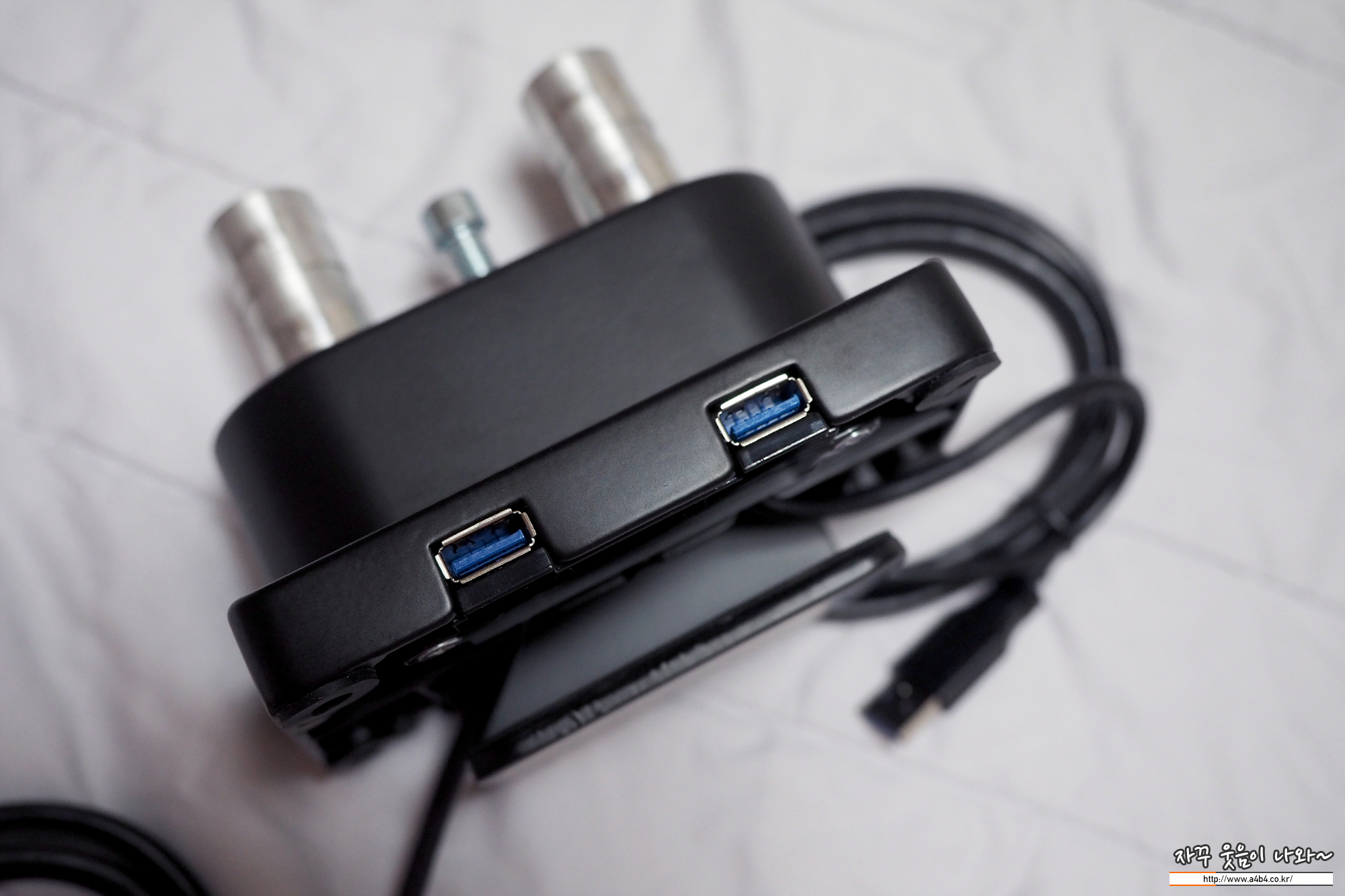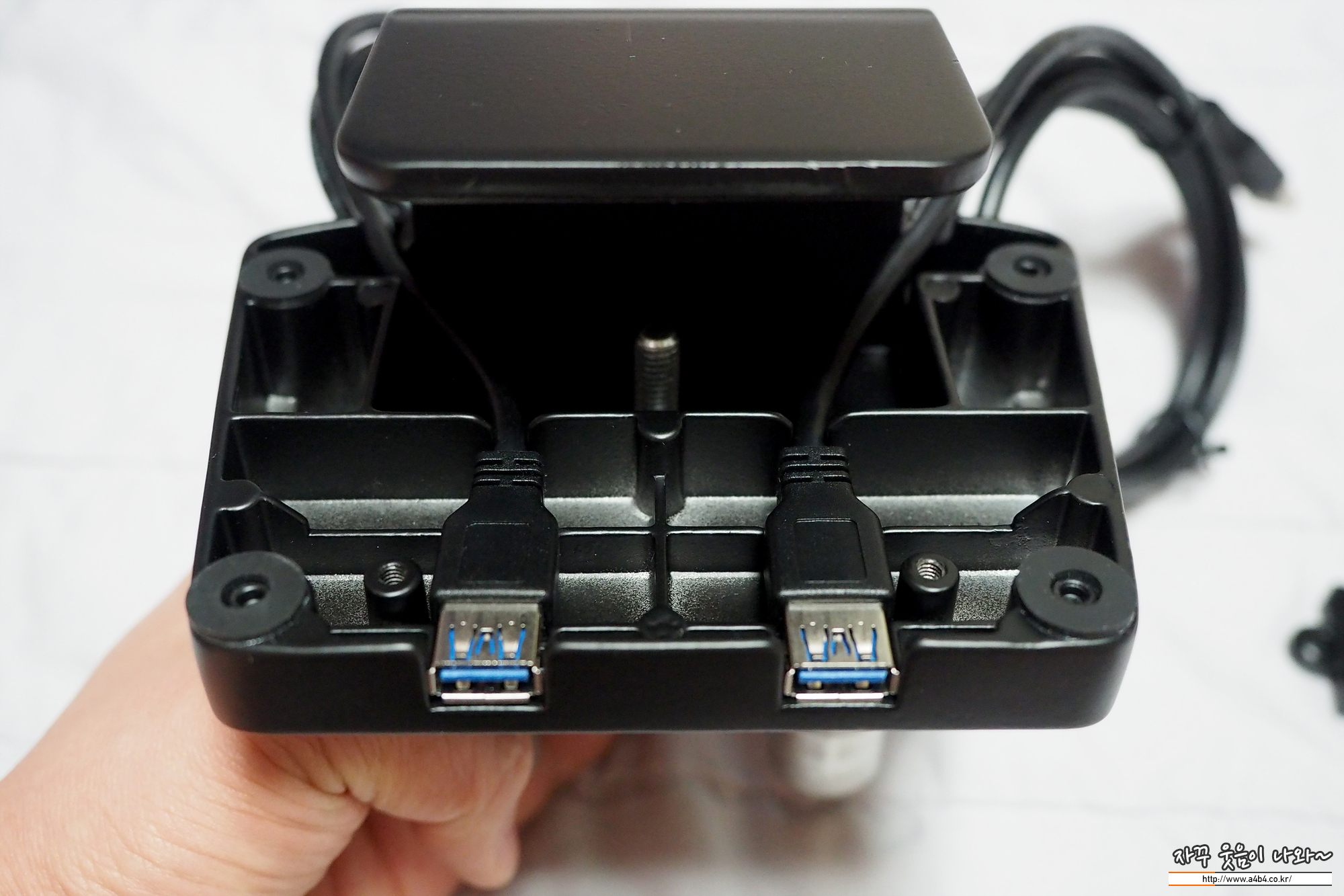 루나랩 듀얼 모니터암 거치대에 적용할 수 있는 USB 킷으로 옵션사항입니다. 선택하지 않아도 무방하고요. 저처럼 데스크탑을 책상 아래에 놓고 사용할 경우 편하게 USB 메모리나 스마트폰을 연결하여 사용할 수 있습니다.