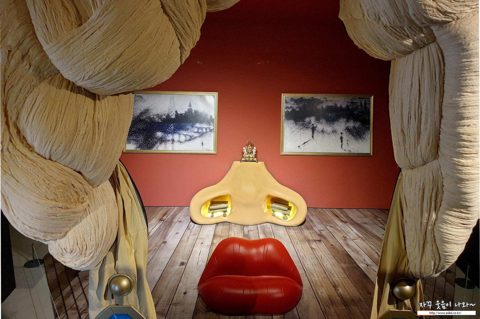 그의 영상과 미국의 유명 여배우 메이 웨스트와 달리를 결합한 전시공간이 준비되어 있습니다.