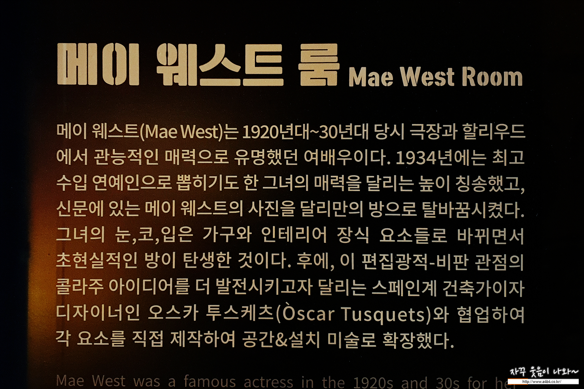 그의 영상과 미국의 유명 여배우 메이 웨스트와 달리를 결합한 전시공간이 준비되어 있습니다.