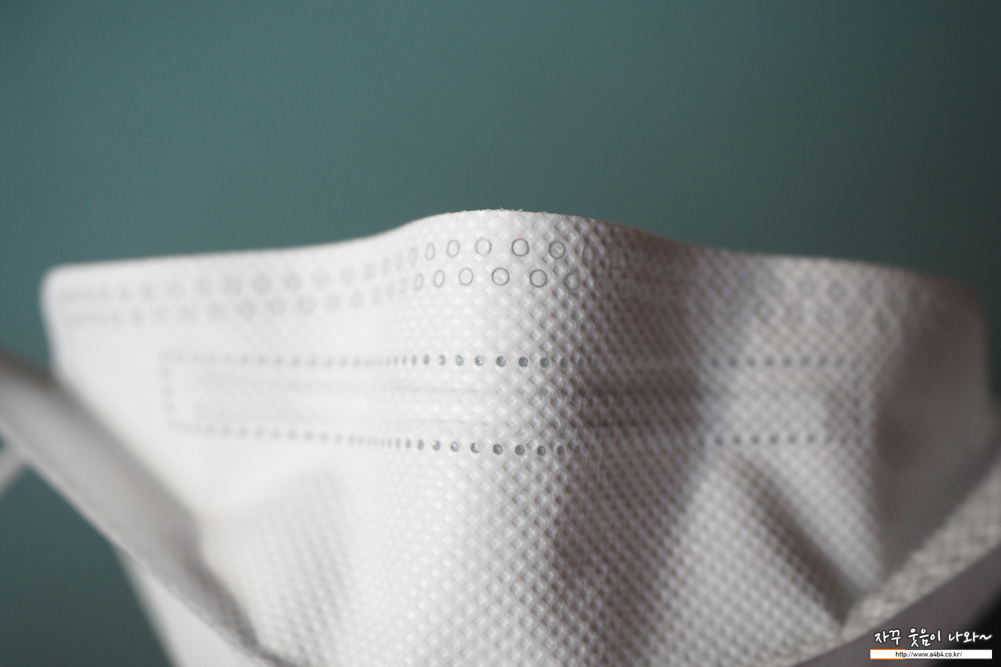 비엠티지스타 황사 방역 마스크 외치는 도트 처리된 매끄러운 촉감의 부직포가 적용되었습니다. 삼중필터 구조로 두께는 조금 얇은 타입입니다. 소프트한 스타일의 마스크는 아니지만 두께가 얇다 보니, 딱 착용각이 나오지는 않습니다.