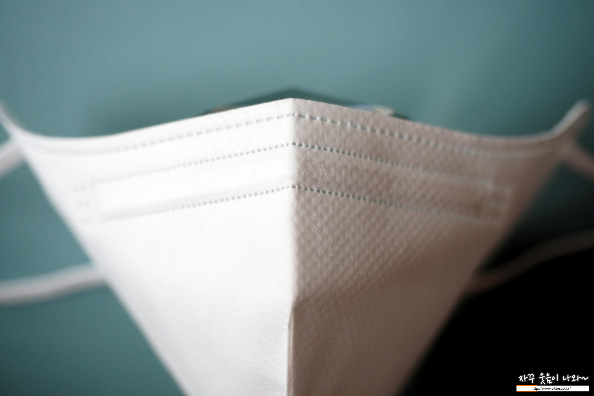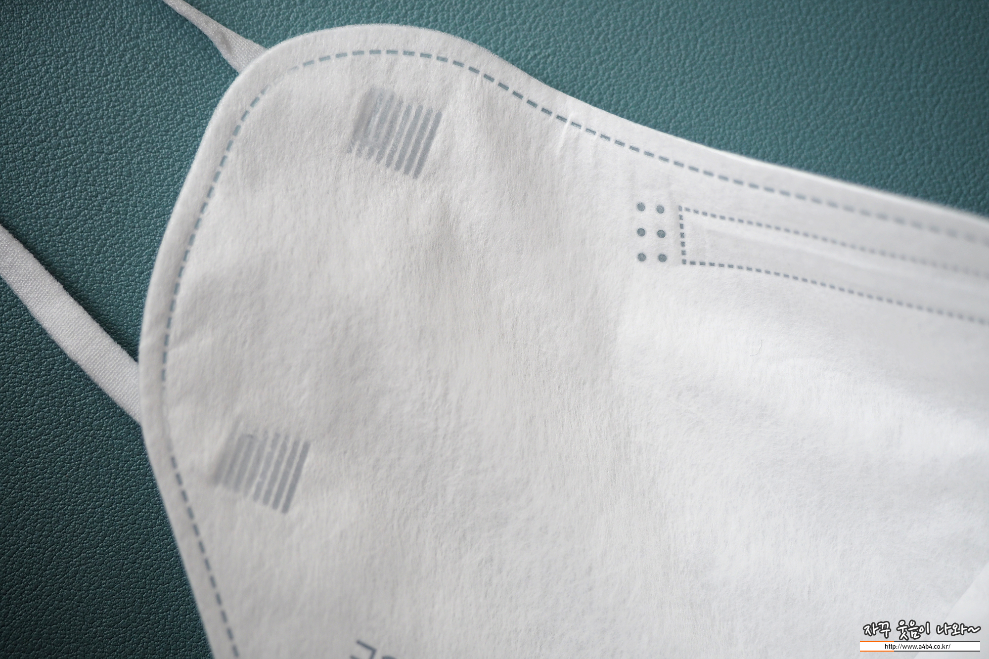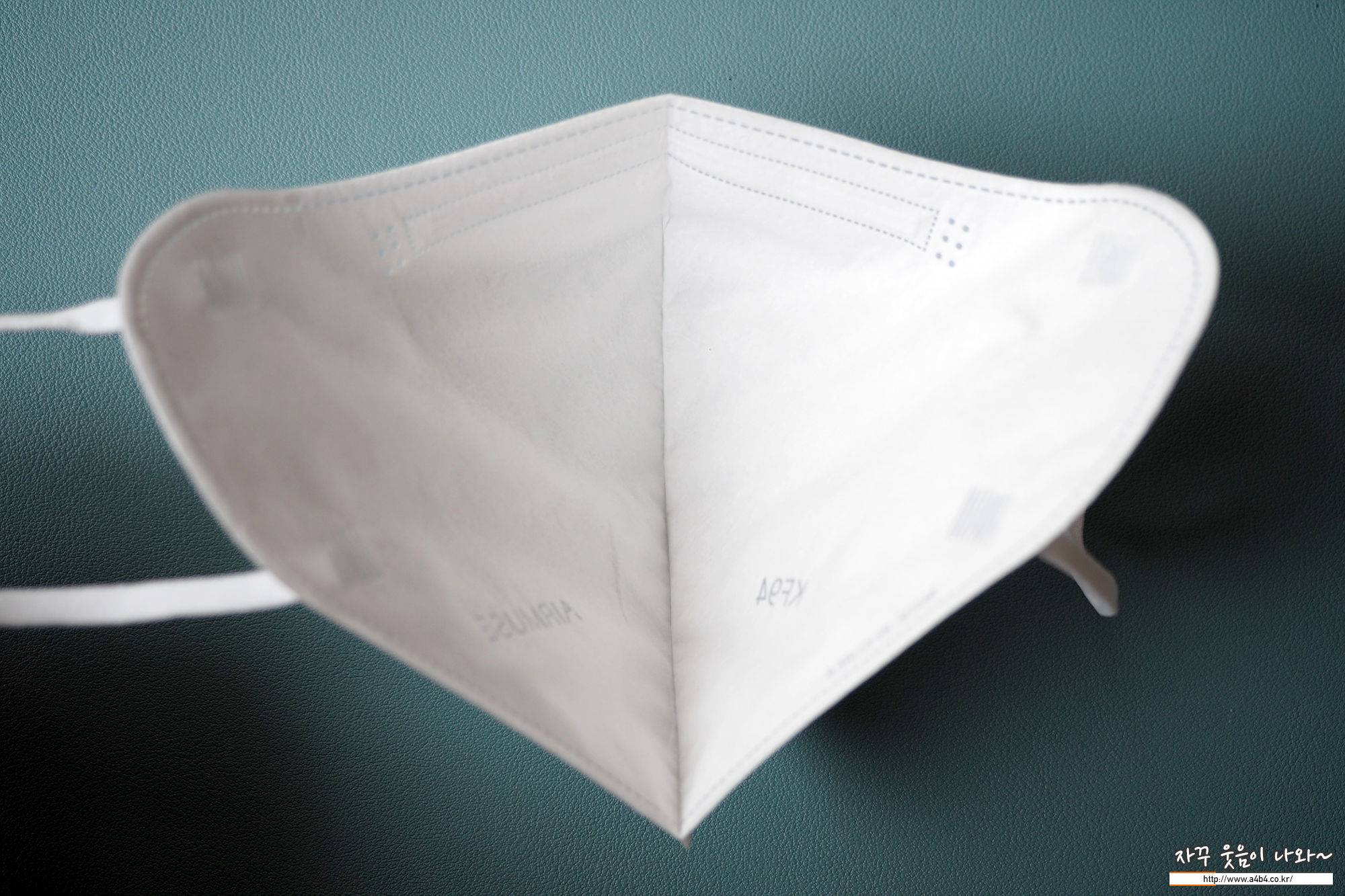 에어뮤즈 보건용마스크 귀걸이끈은 고급 새부리형 마스크에서 주로 사용되는 납작한 디자인의 칼국수끈이 마스크 전면에 부착되어 있습니다.
