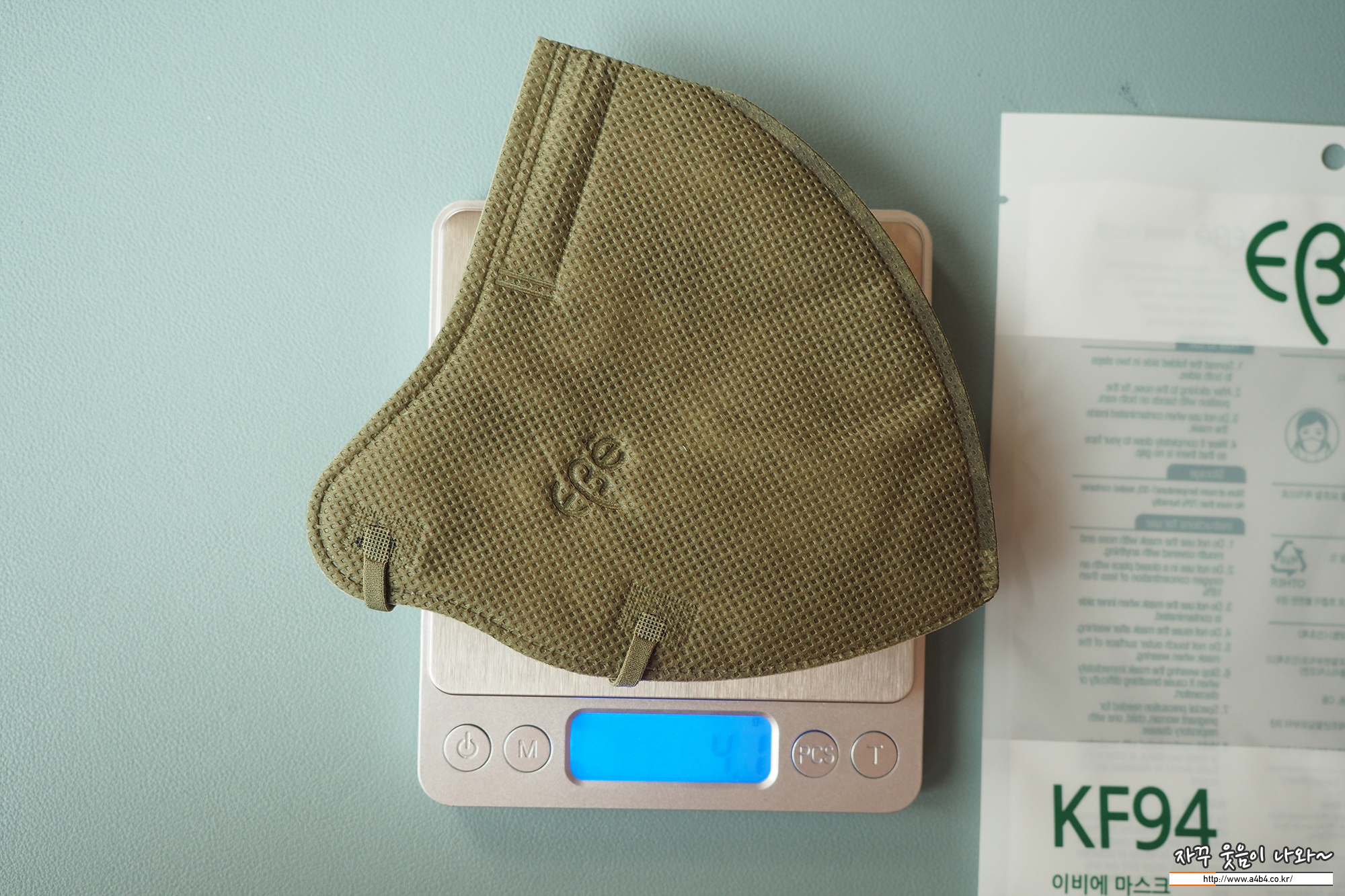폴리테크 이비에 컬러 마스크 KF94 대형 무게는 4.1그램으로 다른 새부리 대형 마스크 보다는 약간 가벼운 무게를 보입니다.