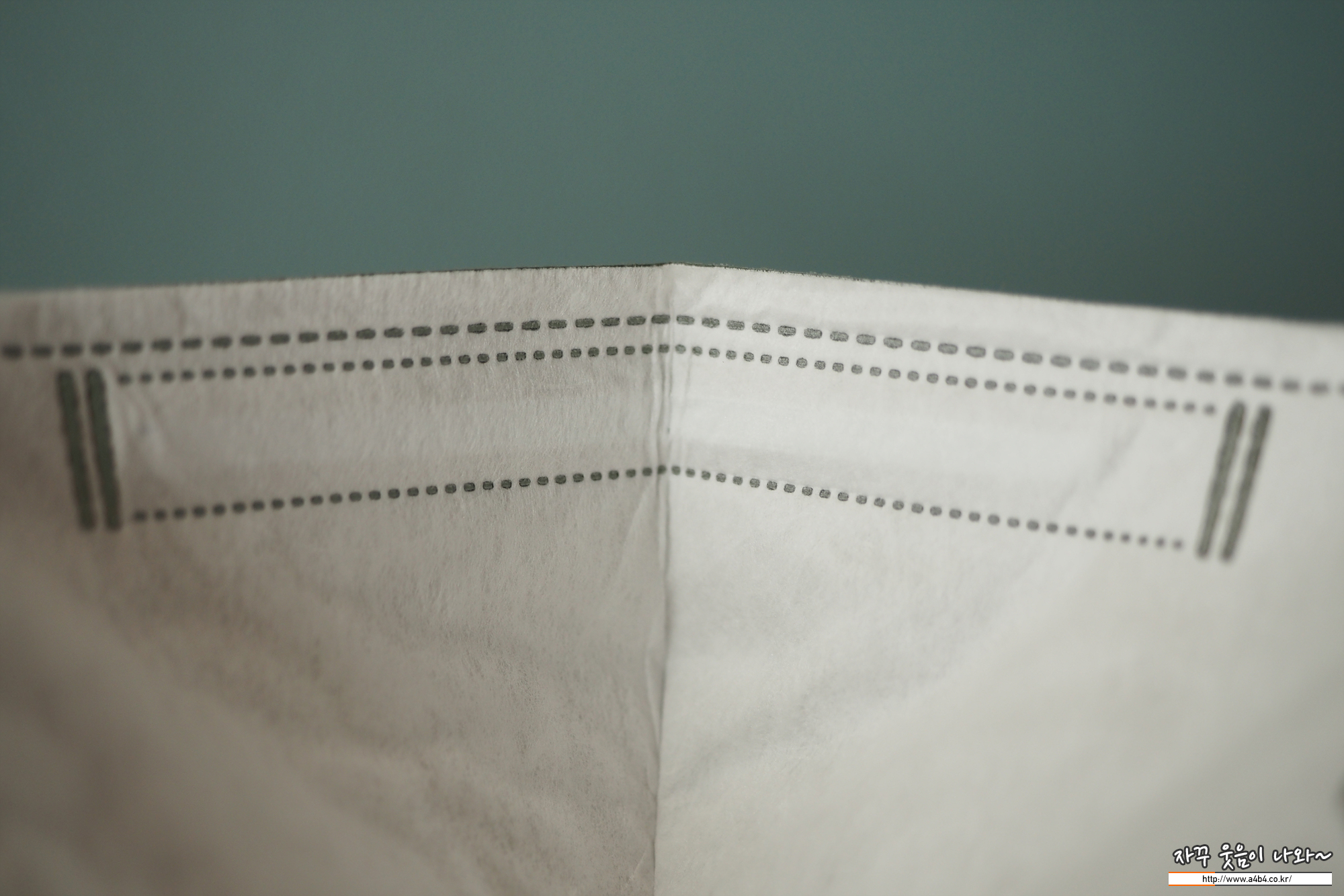 이비에 마스크 외피는 도트 처리된 매끄러운 촉감의 부직포가 적용 되었습니다. 4중 구조임에도 두께는 상대적으로 얇은 편입니다. 착용핏 및 착용감도 하드한 타입으로 무난한 착용감을 보입니다.