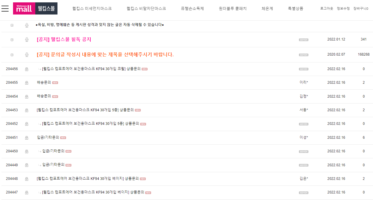 국내 보건용 마스크 제조 및 유통시장에서 상당히 높은 시장점유를 보이고 있는 웰킵스 마스크 관련 푸념입니다.