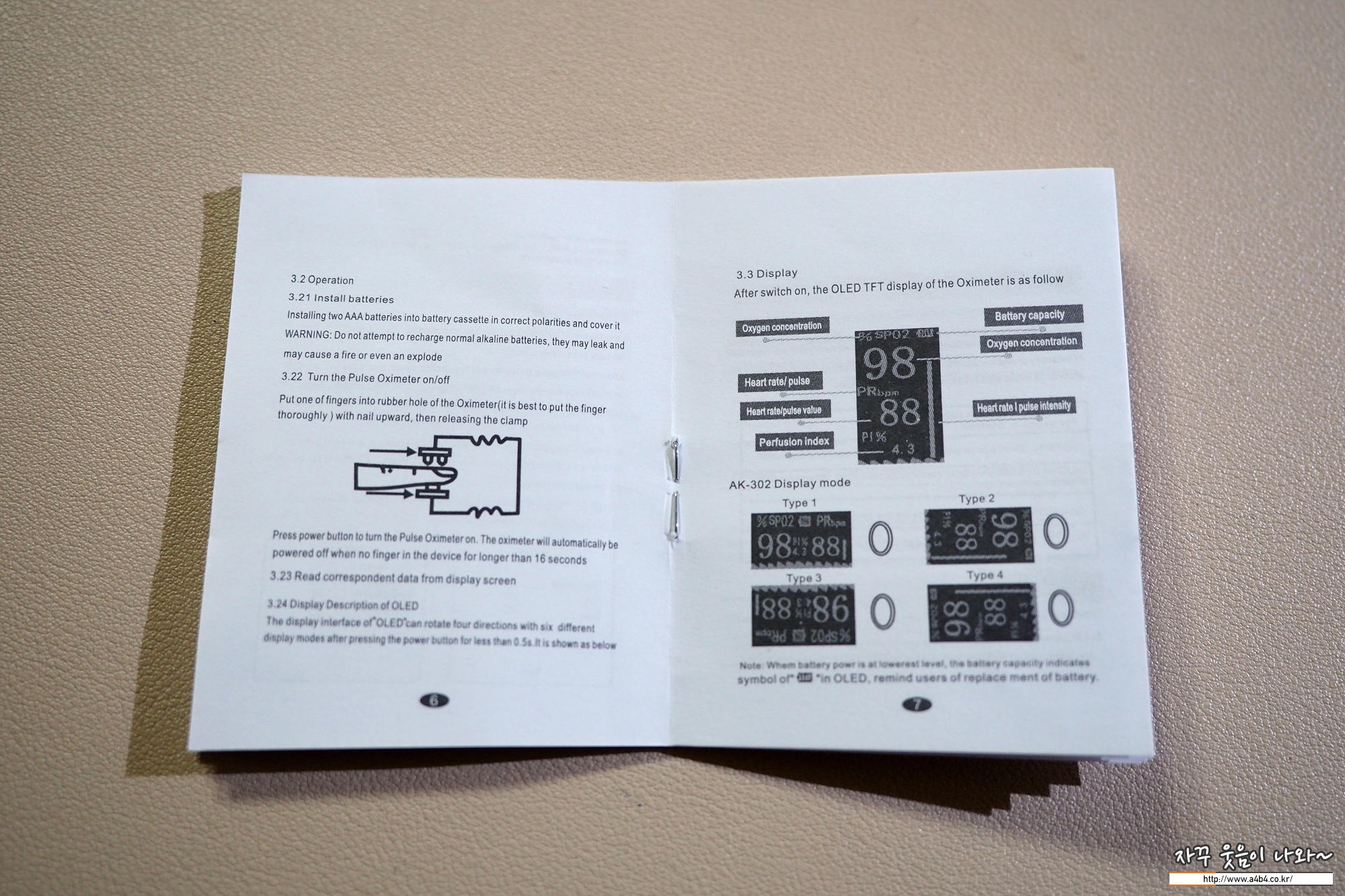 사진과 같이 AAA형 배터리 2개가 들어갑니다. + - 극은 같은 방향으로 되어 있지만 배터리 2개가 반대 방향으로 삽입해야 합니다. 역시나 저렴이 중국산 산소포화도 측정기...