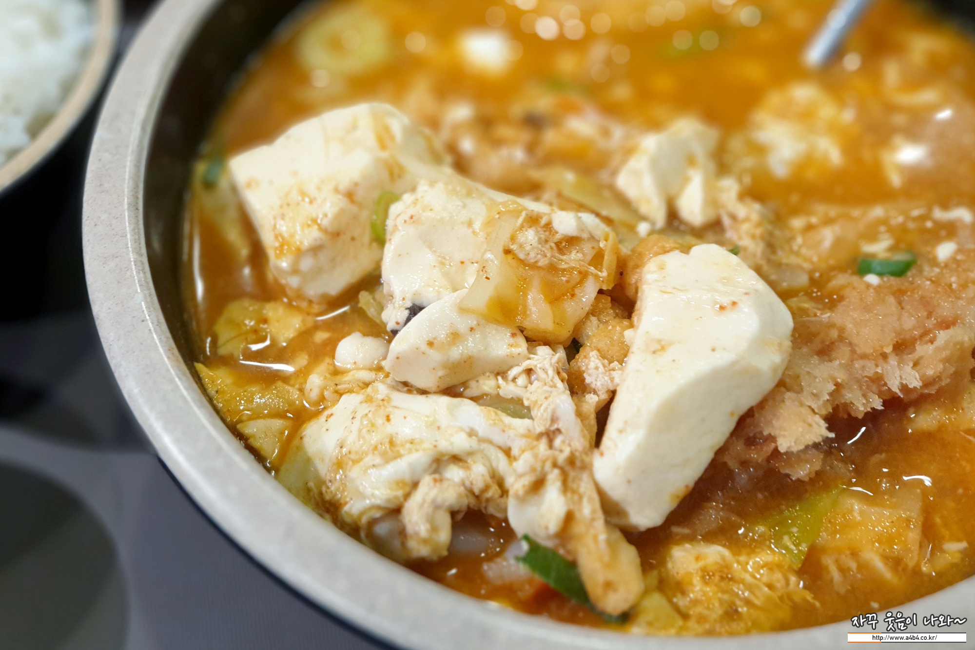 아쉽게도 흔한 양송이 스프는 나오지 않고요. 매운돈까스는 아주 맵다기 보다는 중간 정도 매운맛입니다. 저에게는 딱 좋은 맵기인데, 가족들은 매워서 먹지 못하네요.