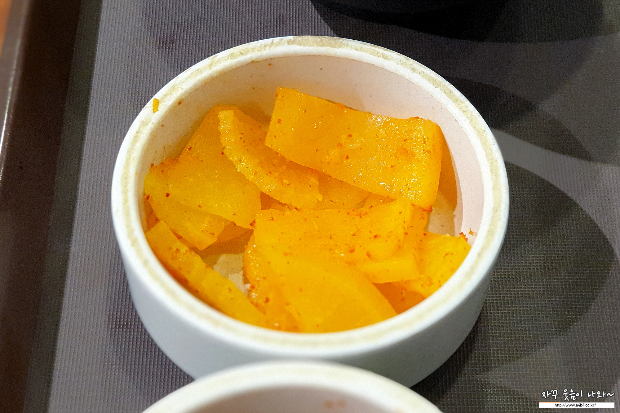 기본 반찬은 김치와 단무지 무침... 그리고 메뉴에 따라 국이 나오기도 합니다.