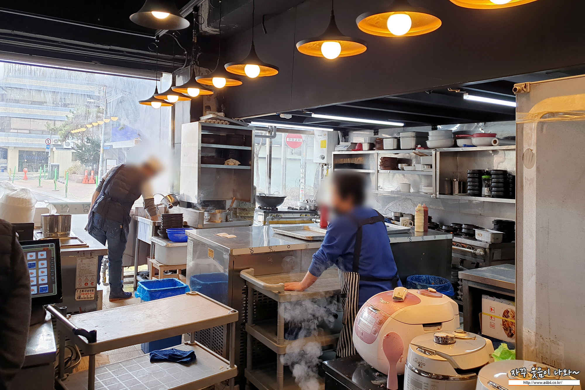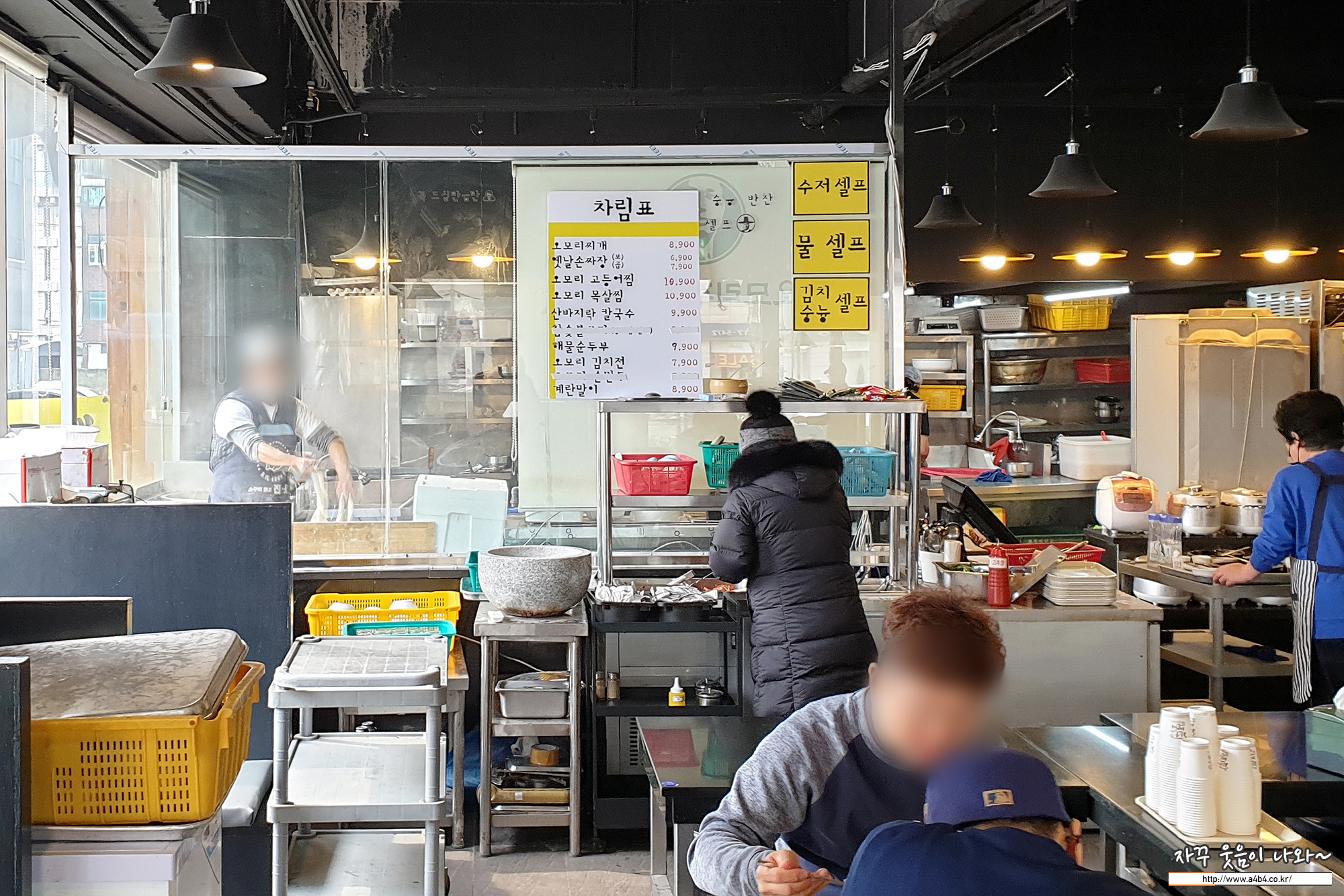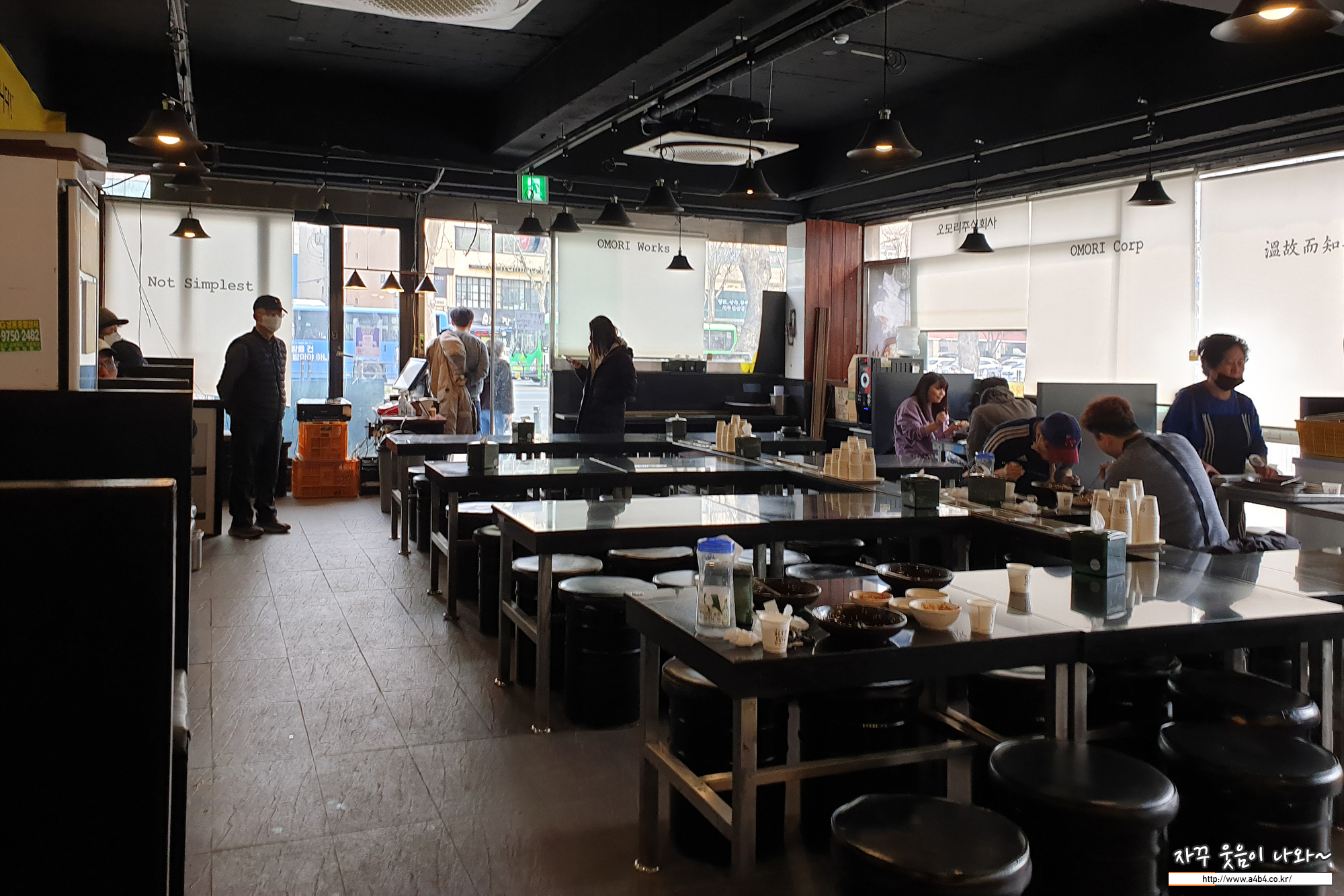 서빙하시는 분과 수타면을 뽑아내시는 주장장님이 보이네요. 옛날에는 여러분이 유리창 밖에서보 볼 수 있는 공간에서 쉴틈없이 수타면을 뽑으셨는데... 과거의 맛집 영광은...
