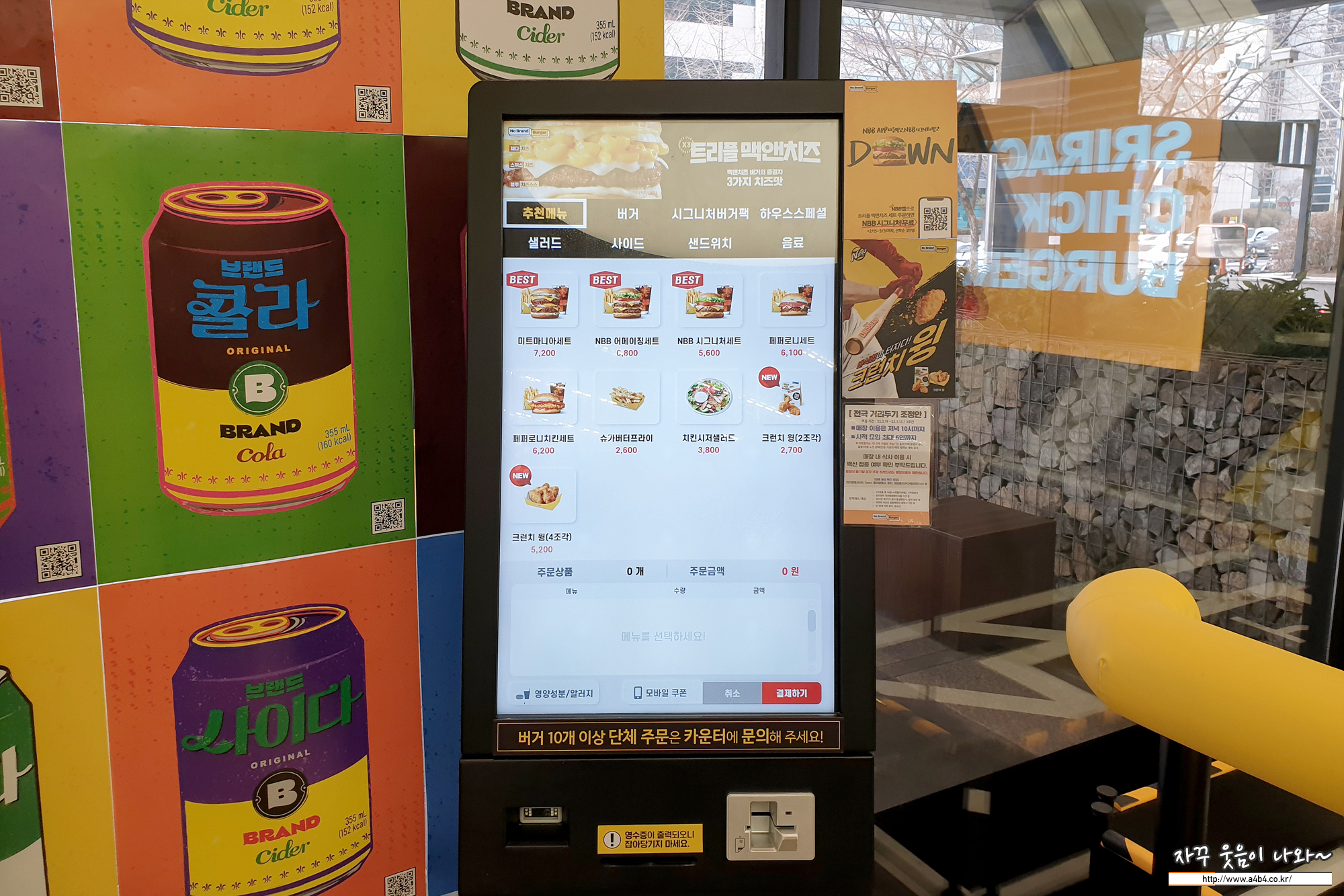주문은 역시 무인 키오스크를 통해 주문이 진행됩니다. 그래도 노브랜드 버거 키오스크 UI는 맥도날드나 롯데리아에 비하면 상당히 편하게 디자인되어 있다는...