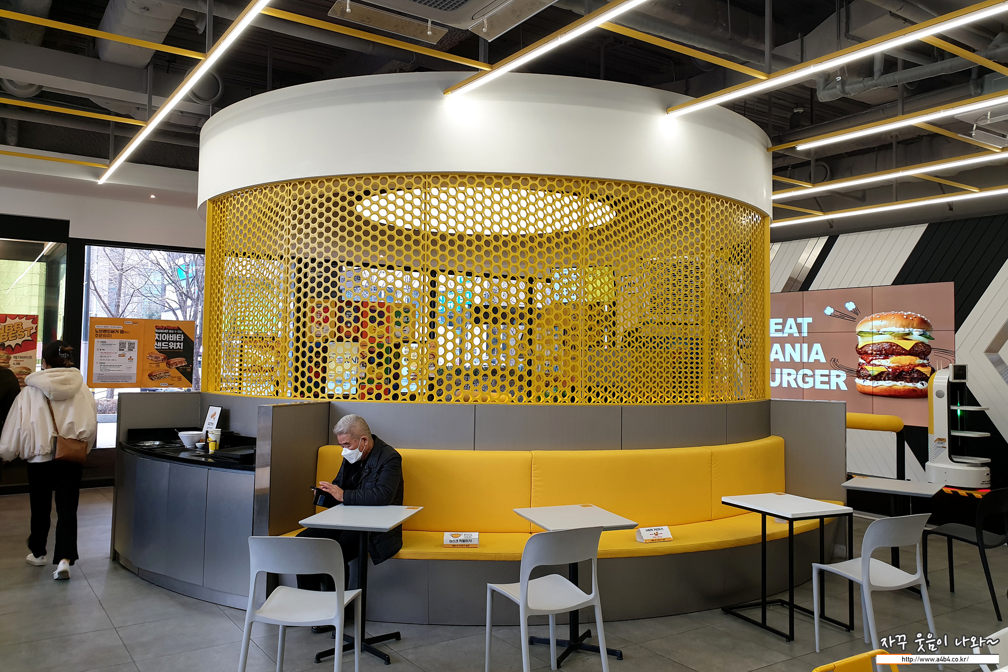 노브랜드 버거 역삼점 실내 모습, 상당히 넓고 깨끗합니다. 테이블간 거리도 상당히 여유있게 배치되어 있다는...