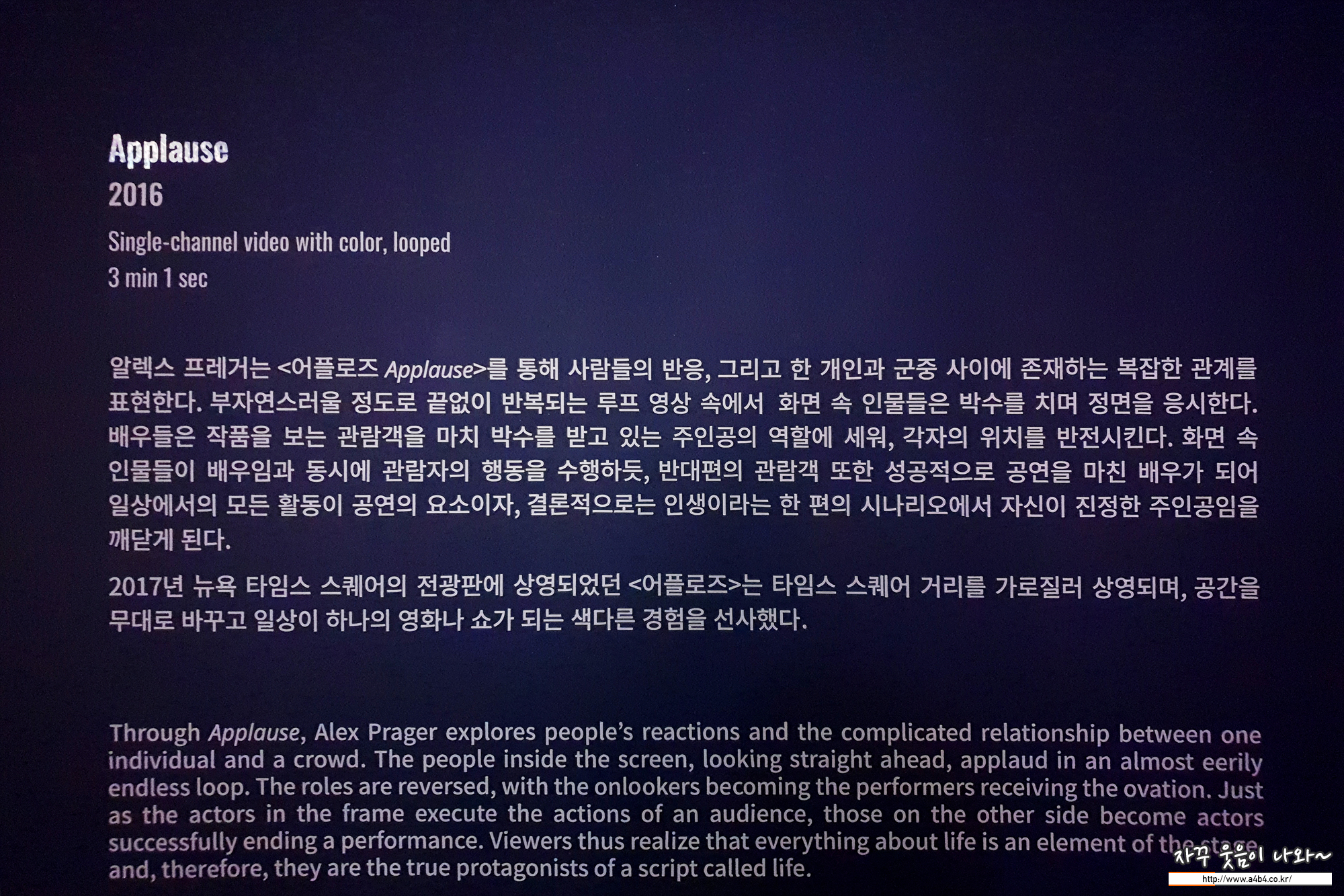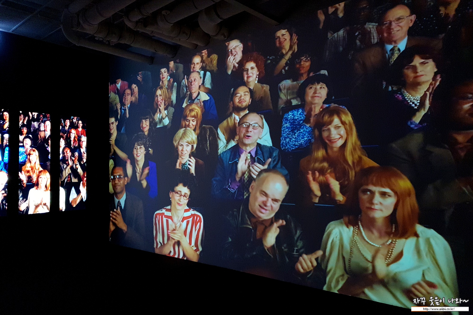 전시회 마지막 공간인 '어플로즈' 그녀의 작품속에 나왔던 인물들이 박수를 치는 영상과...