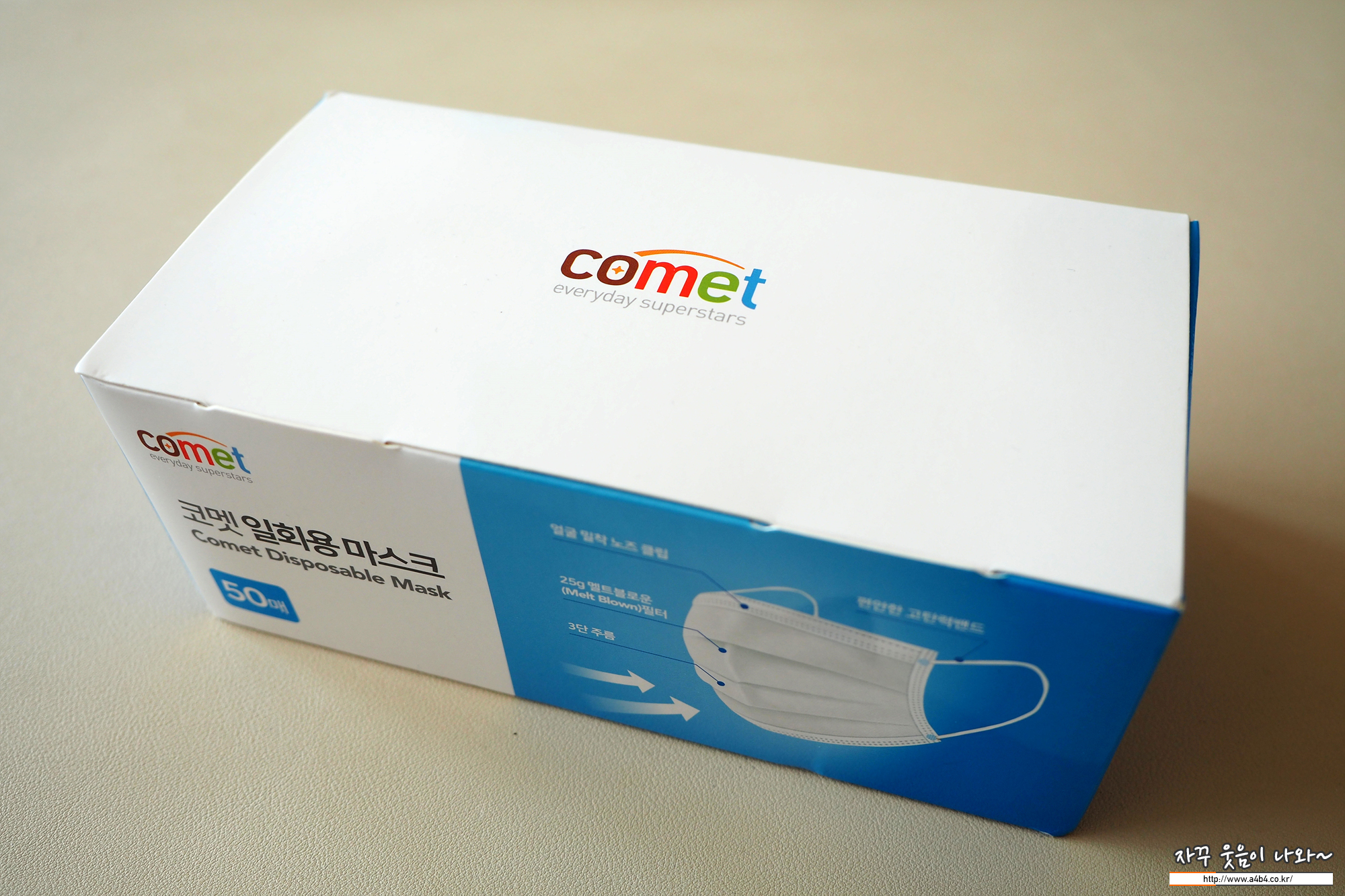 코멧 일회용 마스크는 일반적인 평판형 공산품 마스크 수준입니다. 착용감 착용핏 등등