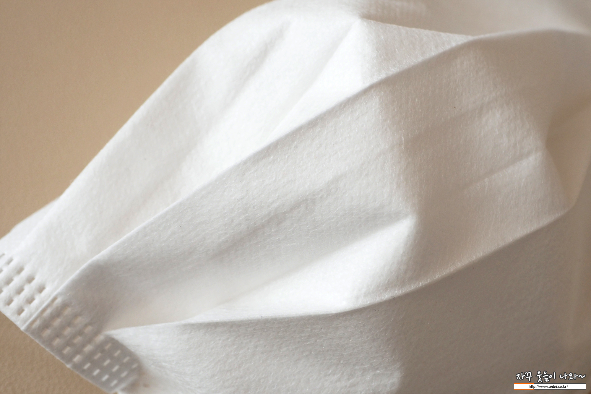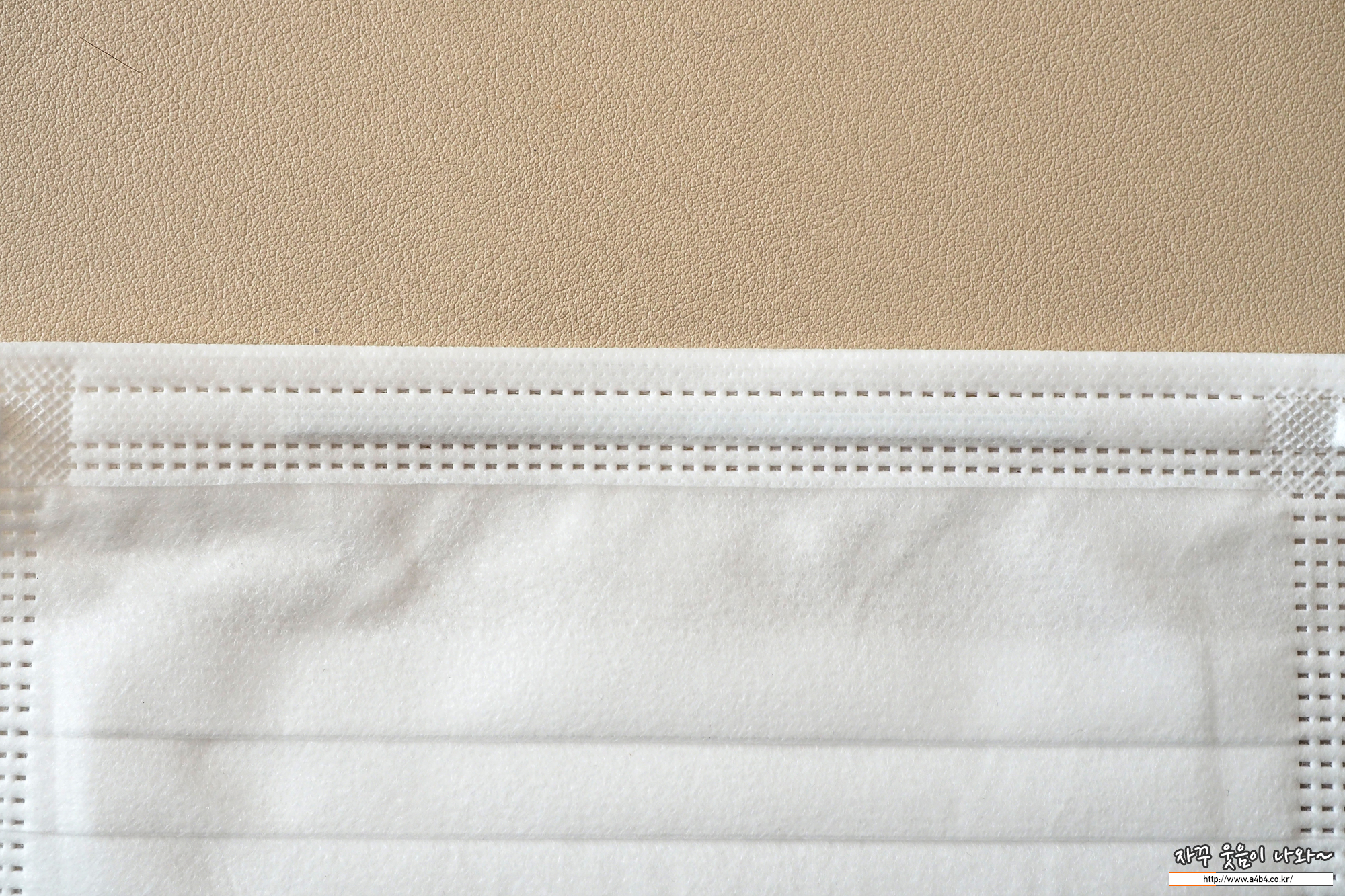 코멧 마스크 안감은 보드라운 감촉의 부직포가 적용되었습니다. 안감에 보푸라기가 좀 보이네요. 공산품 마스크로 나온 제품이어서 그런지, 안쪽이 매끈하지는 않습니다. 저는 한 시간 정도 착용할때는 심하게 가렵거나 간지러운 문제점은 생기지 않았습니다. (장시간 착용하면 어떨지...), 또한 개봉시 약품냄새가 좀 있습니다.