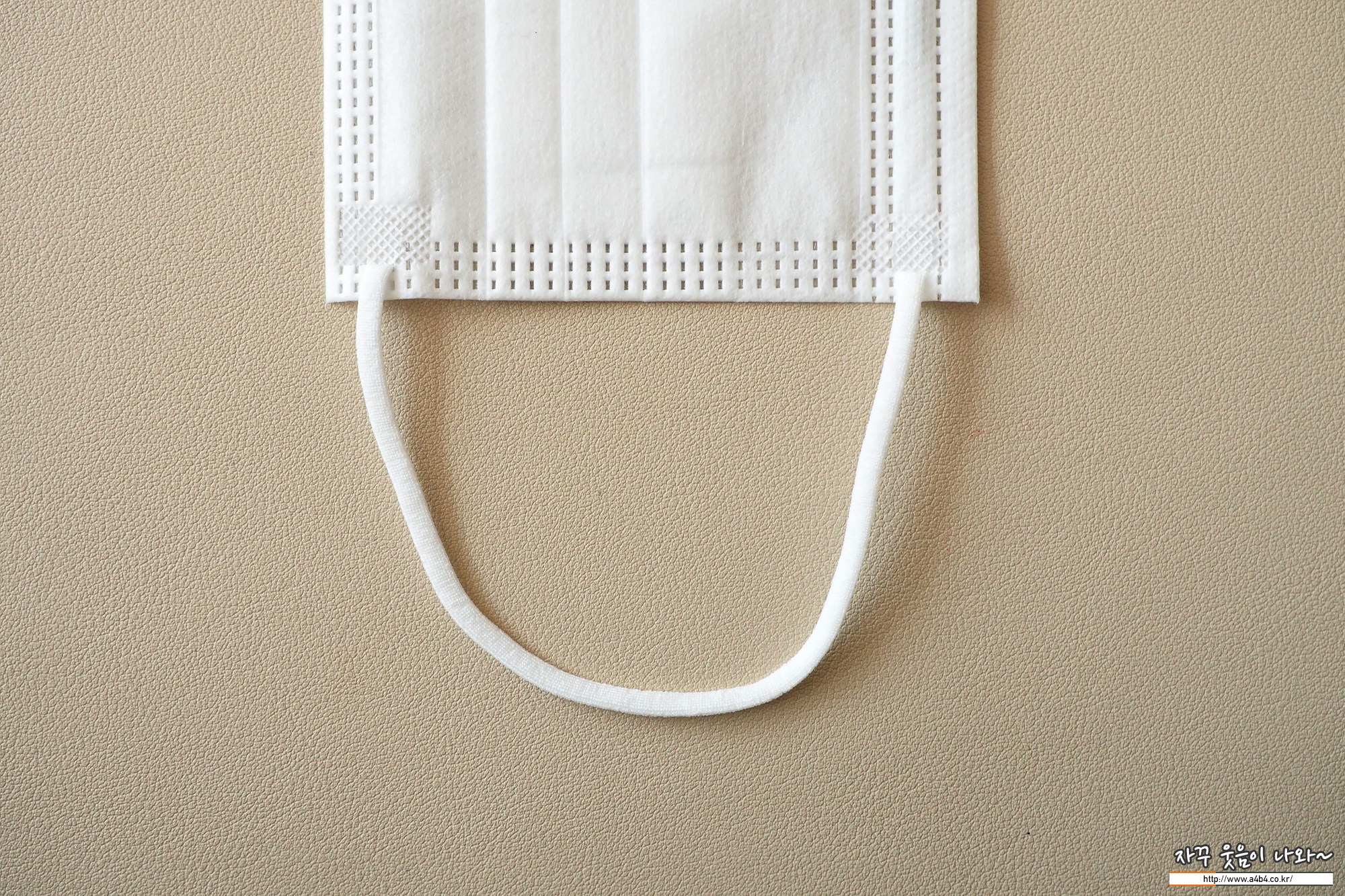 코멧 마스크 귀걸이끈은 납작한 타입의 칼국수끈이 마스크 앞면에 접착되어 있습니다. 저가 덴탈마스크에서는 보기 드믄 옵션입니다. 귀걸이끈 탄성은 보통수준을 보입니다.