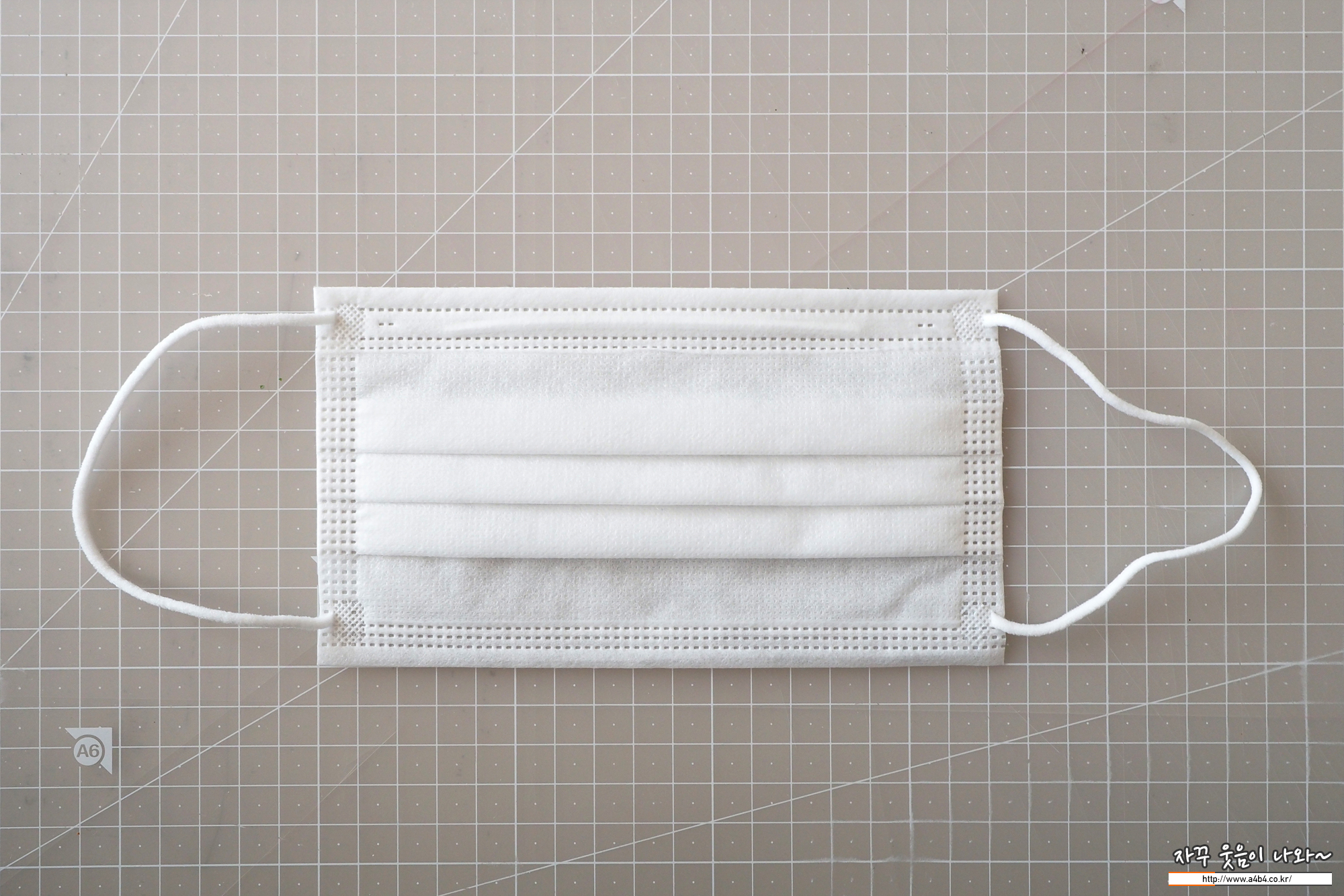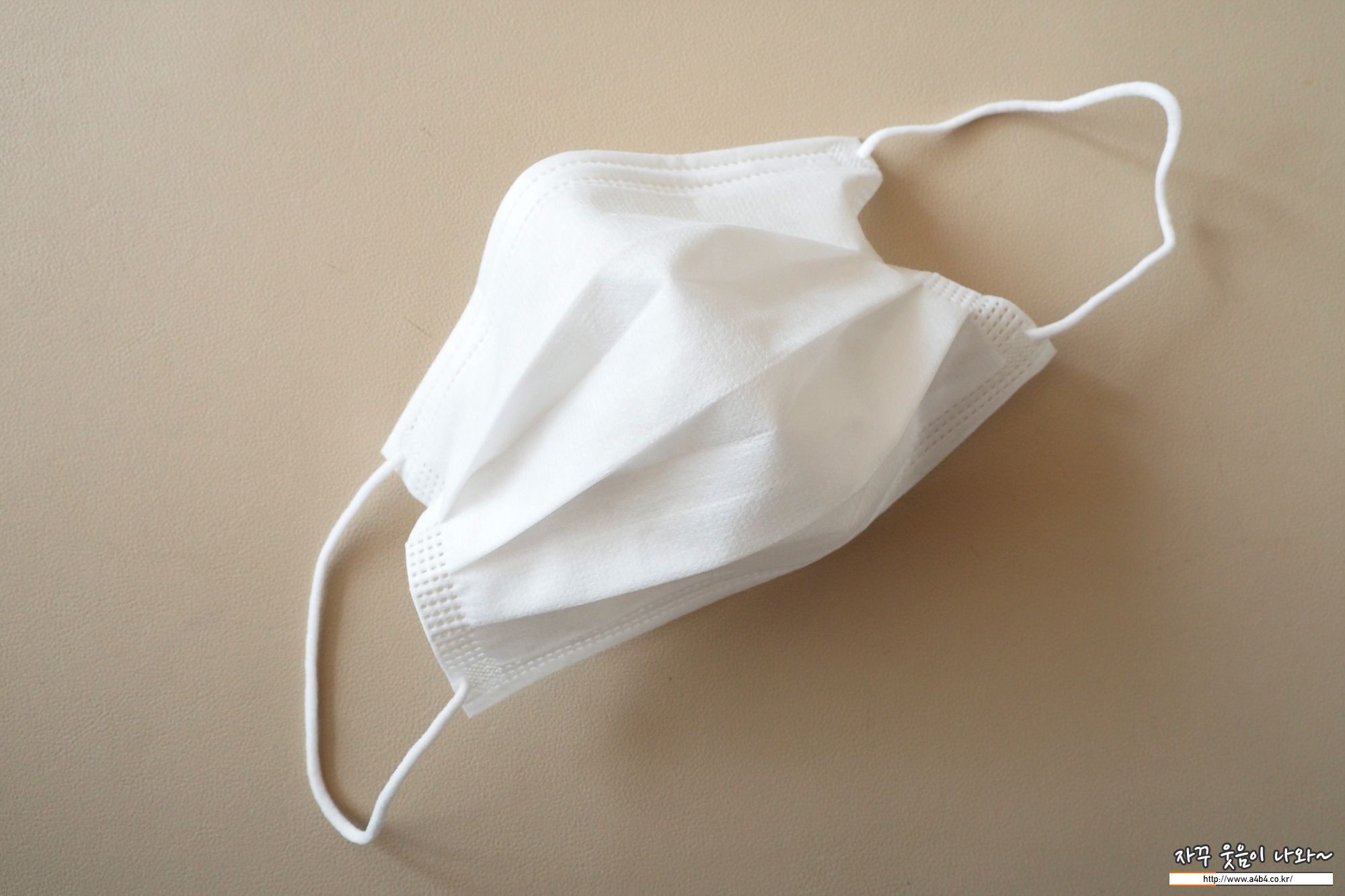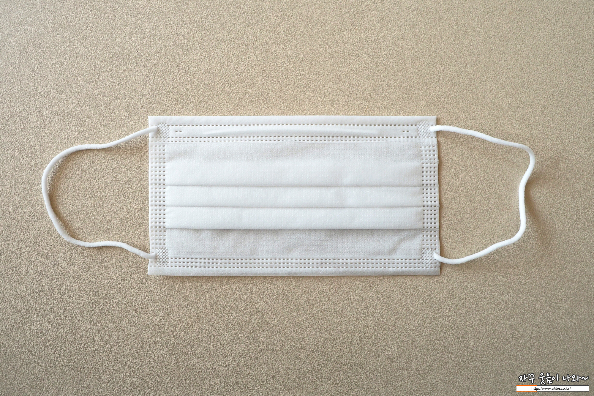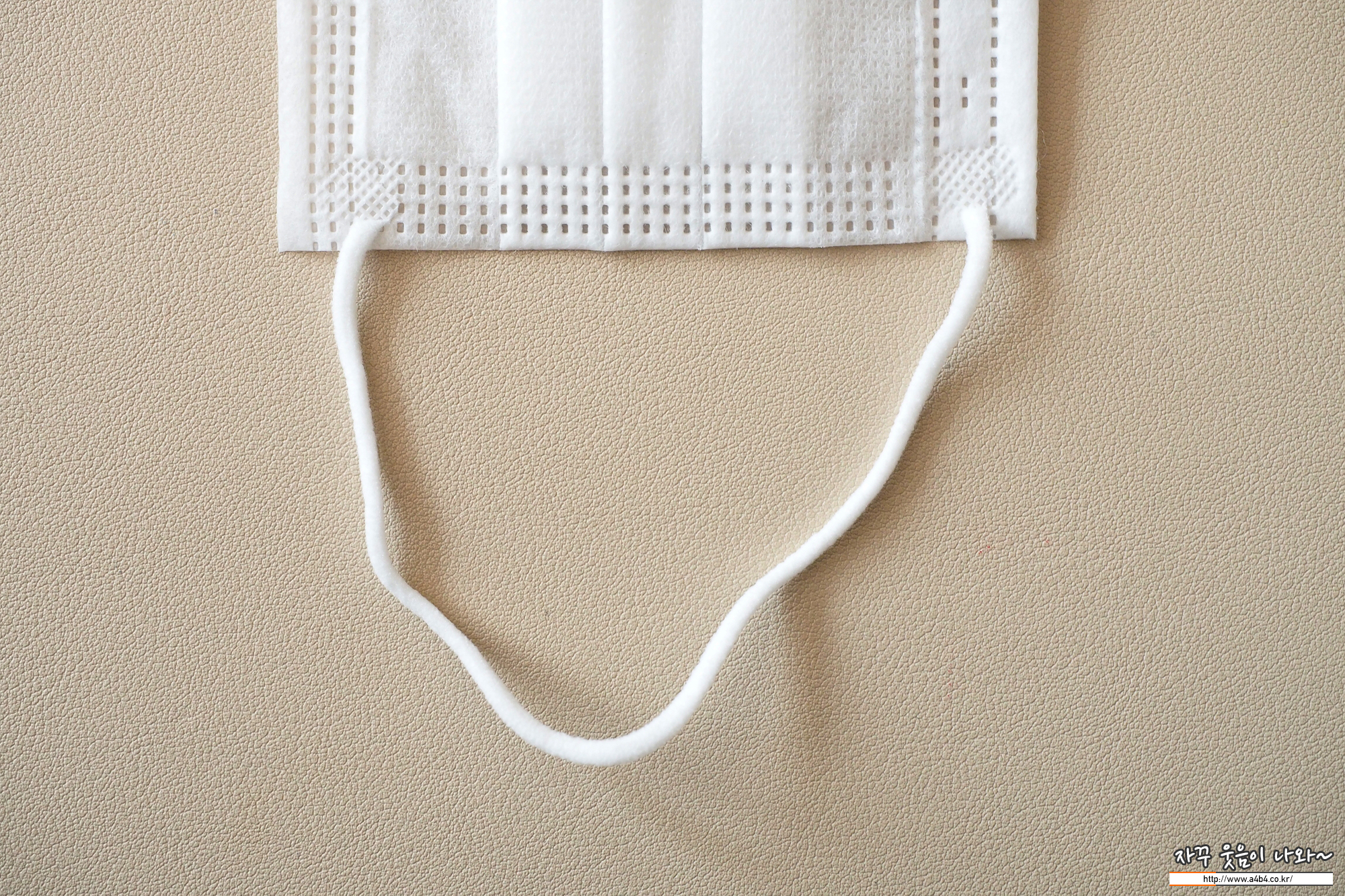 마스크 외피은 약간의 질감이 느껴지는 조금 까끌한 감촉을 보입니다. (착용에 불편은 없음) 두께는 일반적인 덴탈마스크 수준인데 얼굴 비침이 조금 있는 제품입니다.