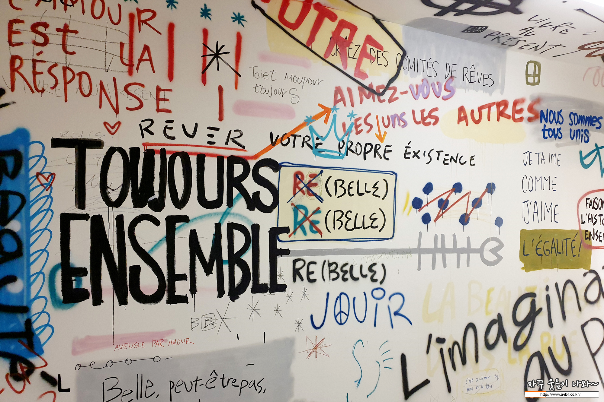 그 시대의 많은 구호, 노래, 예술작품은 문화적 시금석이 되었다. 이 방은 그 당시 벽과 자동차에 휘갈기고 현수막에 적어 내걸던 구호를 비슷한 필치로 벽면에 재현했다. 우리는 아래와 같은 메시지를 읽을 수 있다.