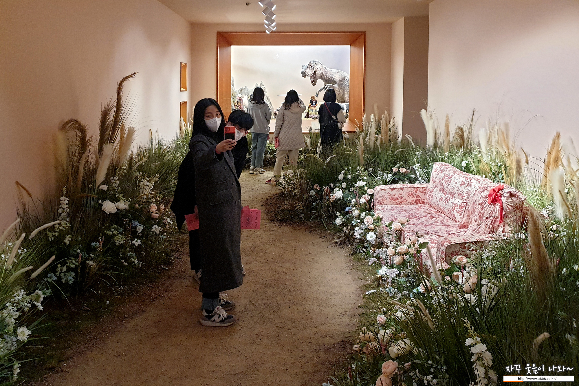 바로 전시장으로 들어가는 것이 아닌, 이렇게 생긴 진한 핑크색의 긴 통로를 지난 후 입장 가능하다는 이 통로 자체가 상당해 매력적인 사진촬영 공간의 역할도...