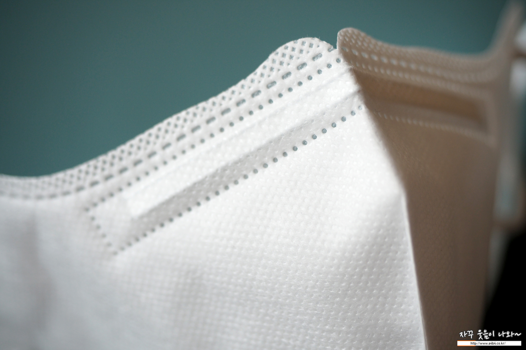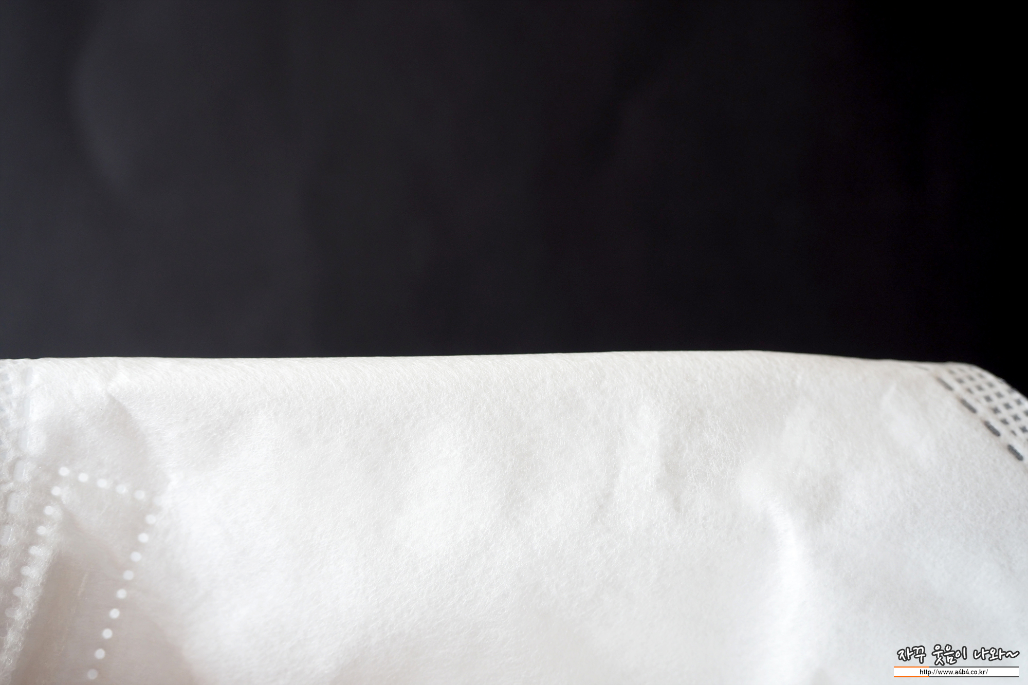 이하늬 마스크는 약한 패턴처리된 드라이한 감촉의 겉감이 적용되었습니다. 4중필터 방식으로 마스크의 두께는 일반 수준에서 약간 두꺼운... 그리고 상대적으로 소프트한 착용감을 보이는 제품입니다. (기존 닥터퓨리 입체형 마스크 보다는 상대적으로 하드한 타입입니다만...)